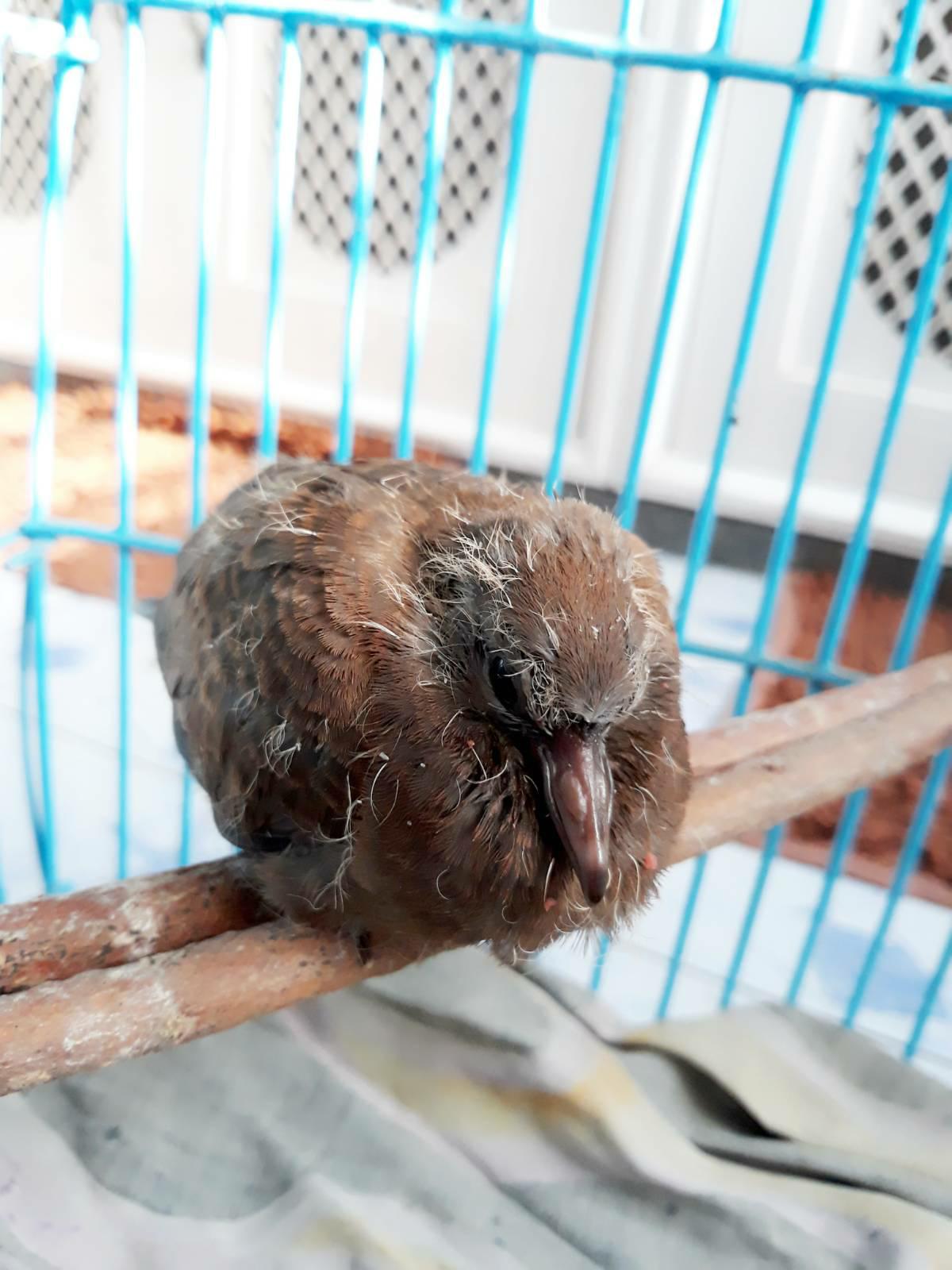 พอดีไปเจอลูกนกบินหลงมา ลักษณะยังบินไม่แข็งแรง พยายามกระพือปีกบิน แต่บินแล้วก็ตกลงมา ไม่ทราบว่านี่คือนกเขาหรือเปล่าครับ พอดีว่าที่บ้านมีกรงนกอยู่เลยเอาใส่กรงไว้และพยายามจะป้อนอาหาร แต่เค้าไม่ยอมกินเลย จับปากให้อ้าแล้วก็ไม่ยอมกิน อาหารที่ให้เป็นอาหารเม็ดสำหรับนกขุนทองของ Smart Heart ครับ