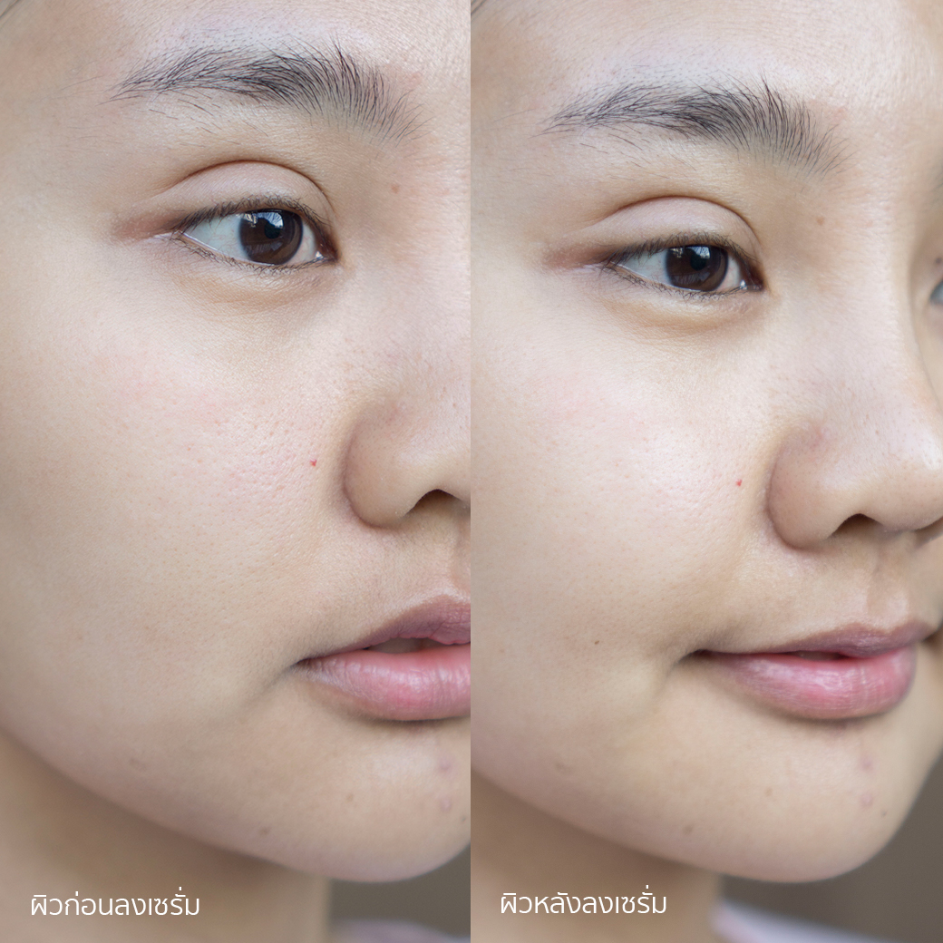 มาดูผลลัพธ์ก่อน-หลัง ลงเซรั่ม ซึ่งภาพได้ถ่ายหลังตื่นนอนช่วงเช้า