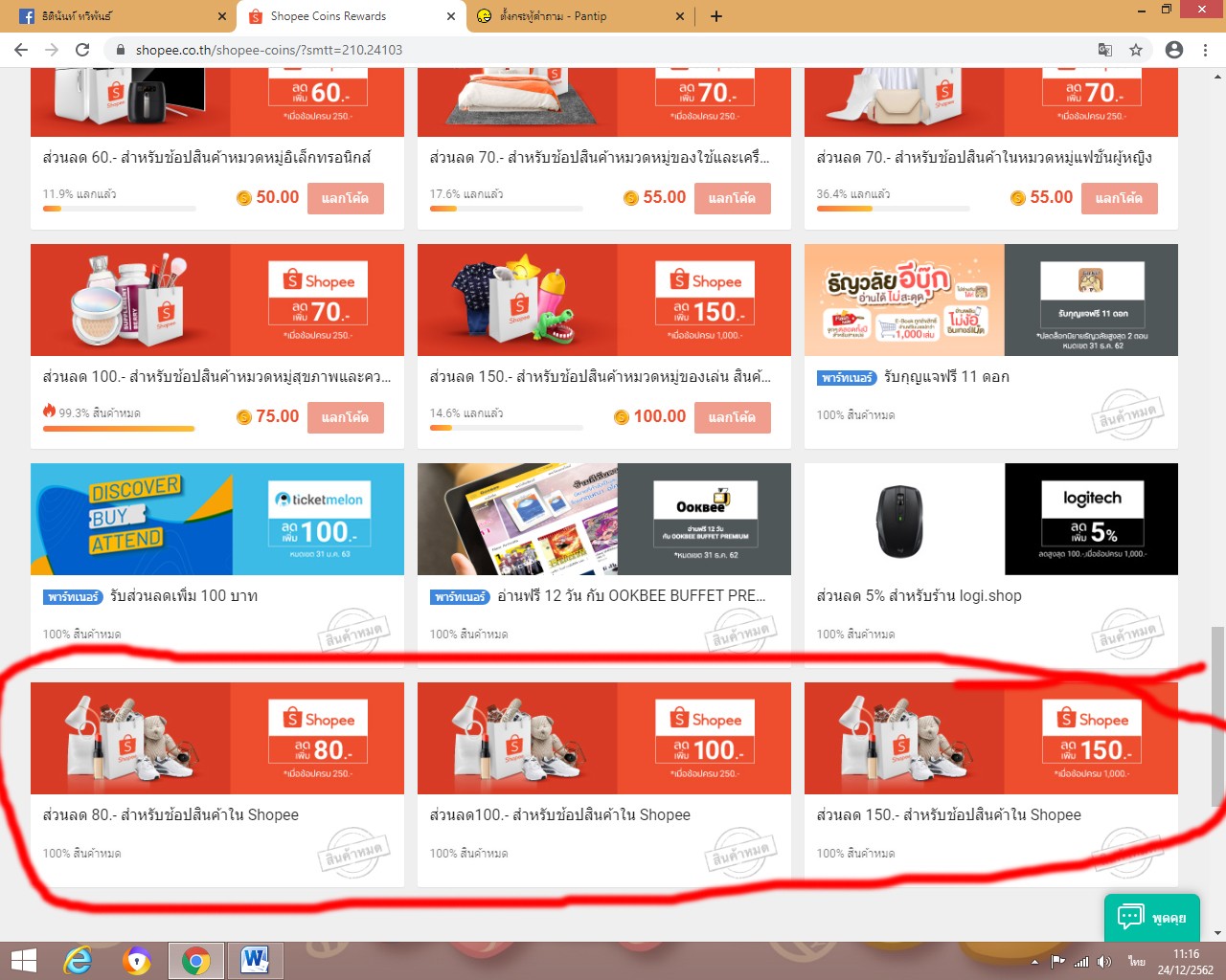 ใช้โค้ดคืน coins แล้ว coins ไม่เข้า (shopee )
