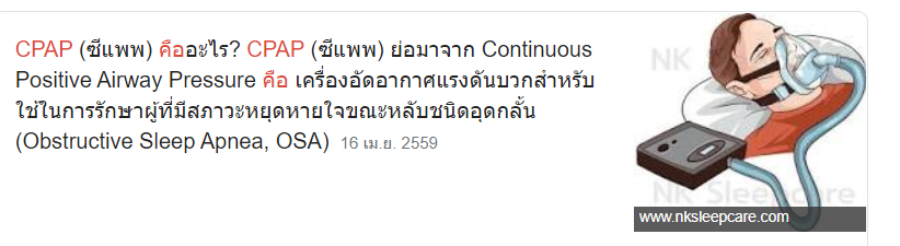 ตอนนี้ผมกำลังรักษาภาวะหยุดหายในขณะหลับกับทางโรงพยาบาลรัฐแห่งหนึ่งใจกลางกทม. อยู่ครับ ทางหมอแนะนำให้ใช้เครื่อง CPAP โดยให้เป็นนามบัตรมา แต่พอไปดูราคาเครื่องที่นายหน้าขายแล้ว มันแพงมากเลยครับ หาข้อมูลดู
