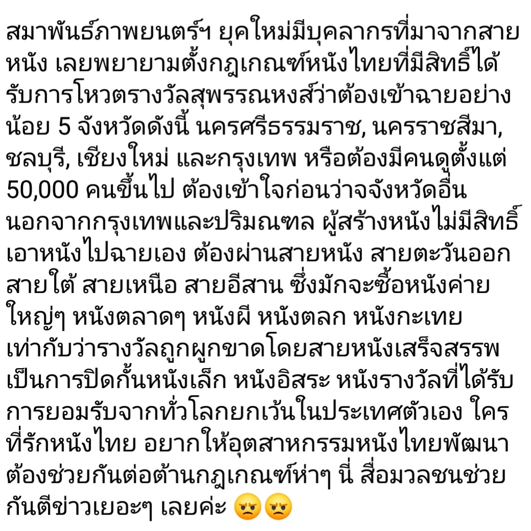 คุณคิดอย่างไรกับกฎเกณฑ์แบบใหม่กับหนังไทยที่มีสิทธิ์เข้าชิงรางวัลสุพรรณหงส์ ซึ่งจัดโดยสมาพันธ์ภาพยนตร์ฯ