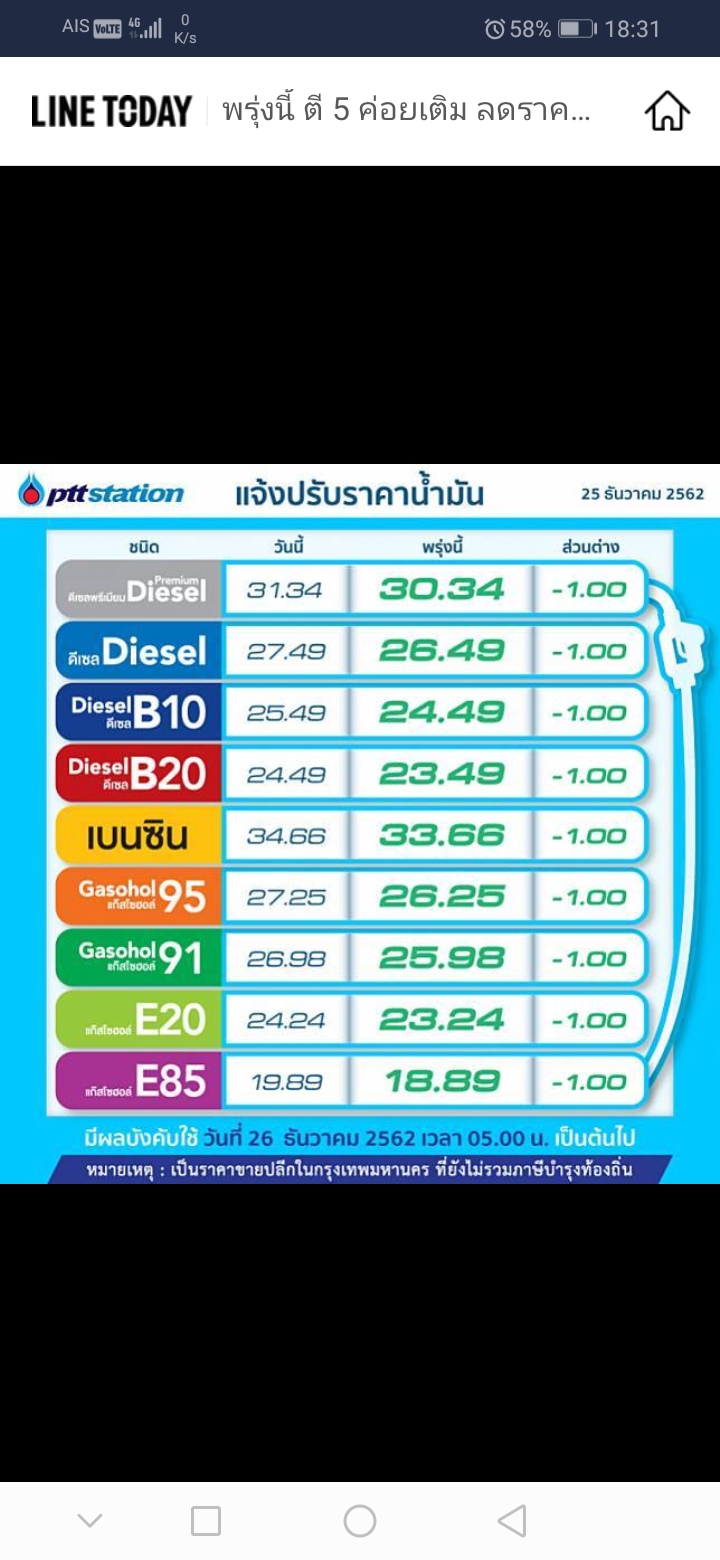 ...........ข่าวดีผู้ถือหุ้นพี่ปอ.... พรุ่งนี้ราคาน้ำมันลดราคาลง1บาทต่อลิตร.......