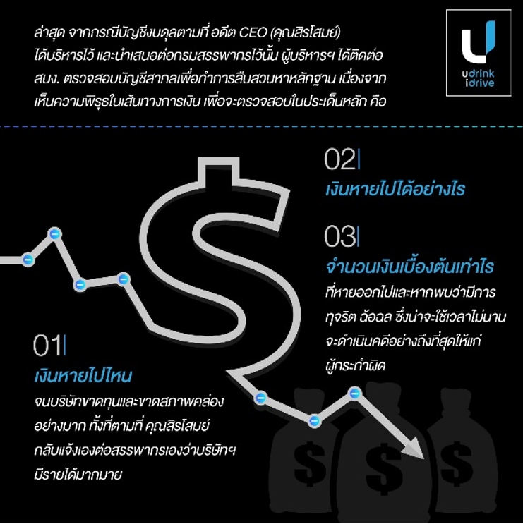 https://mgronline.com/onlinesection/detail/9620000092226 ) จับต้นชนปลายแล้วก็ดูมีพิรุธจริงๆ คราวนี้ก็ต้องคอยตามข่าวกันต่อไปว่าทางฝั่งหุ้นส่วนอีก 2 คน จะหา ความกระจ่างให้กับข้อสงสัยทางการเงินได้หรือไม่? อยากรู้ตอนจบเร็วๆ เหมือนกันนะเนี่ย