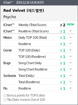 [K-POP] รายงานชาร์ตเพลง 4 ชาร์ต (25.12.2019) | Red Velvet - Psycho [4ชาร์ต]