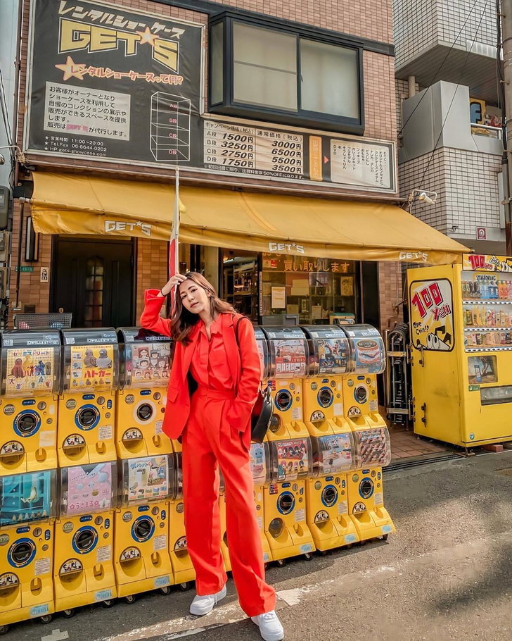 เรื่องแฟชั่นต้องยกให้ มิ้งค์ ยูมิโกะ เน็ตไอดอลสายแฟ กับแฟชั่นสีแดงทั้งเสื้อและกางเกง ใครอยากโดดเด่น จับสีแดงแมตช์คู่กัน รับรองเกิด