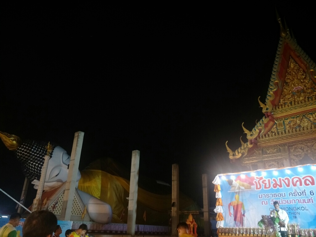 เข้ามาภายในบริเวณงาน จะเห็นองค์พระนอนตั้งสูงเด่นเป็นสง่าอยู่ด้านข้างเวที ซึ่งเป็นพระนอนที่องค์ใหญ่ที่สุดเป็นอันดับที่ 3 ของประเทศไทยเลยคะ