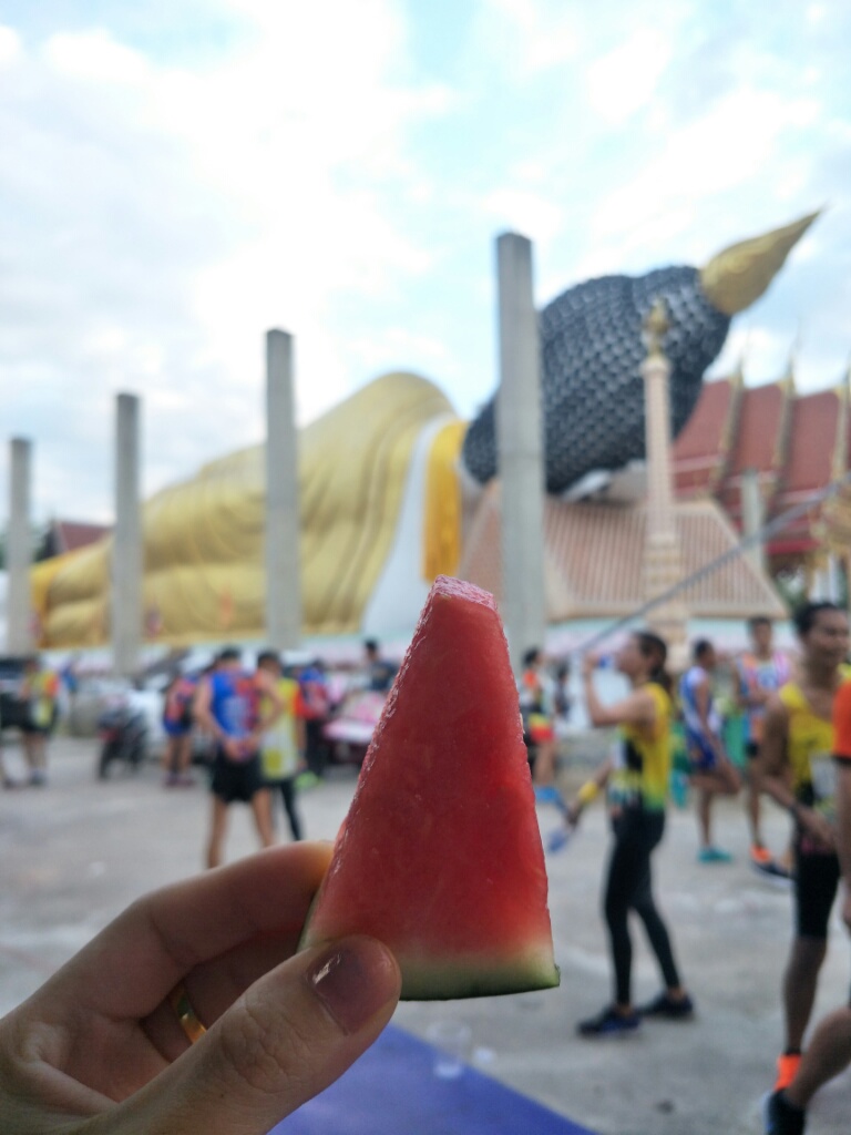 มาพูดถึงเรื่องอาหารการกินกันบ้าง :: นอกจากแตงโมในรูปด้านล่างแล้ว ยังมีข้าวต้มร้อนๆ ไว้คอยบริการเพื่อนๆนักวิ่งอีกด้วยนะคะ ส่วนใครที่ชอบสปอร์นเซอร์ เค้าก็มาออกบูธให้พวกเราได้กินกันเต็มที่เลยคะ