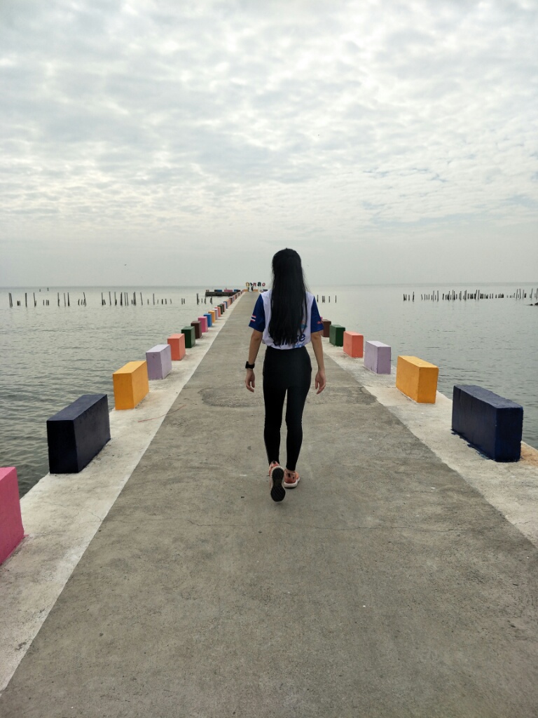 สะพานสายรุ้งที่เรามาชมวิวในครั้งนี้ เป็นสะพานปูนที่ทอดยาวออกไปในทะเล สามารถมองเห็นสะพานไม้สายรุ้งได้คะ ถ้ามาช่วงเที่ยงอาจจะร้อนนิดนึงนะคะ แนะนำช่วงเช้าๆและช่วงเย็นๆเลยคะ ถ่ายรูปพระอาทิตย์ตกดินสวยงามมากๆ
