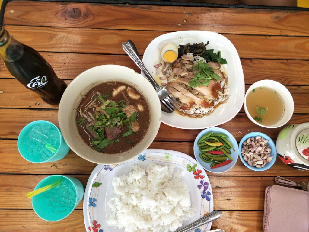 ขับรถไปอีกไม่ไกล แวะมาทานข้าวมื้อเที่ยงกันที่ร้านก๋วยเตี๋ยวเรือป้าทวีและร้านเฮียกรเป็ดย่าง ซึ่งทั้งสองร้านนี้ตั้งอยู่ในปั๊มเอสโซ่บางกระเจ้าสมุทรสาครคะ แวะเติมพลังกันสักหน่อย