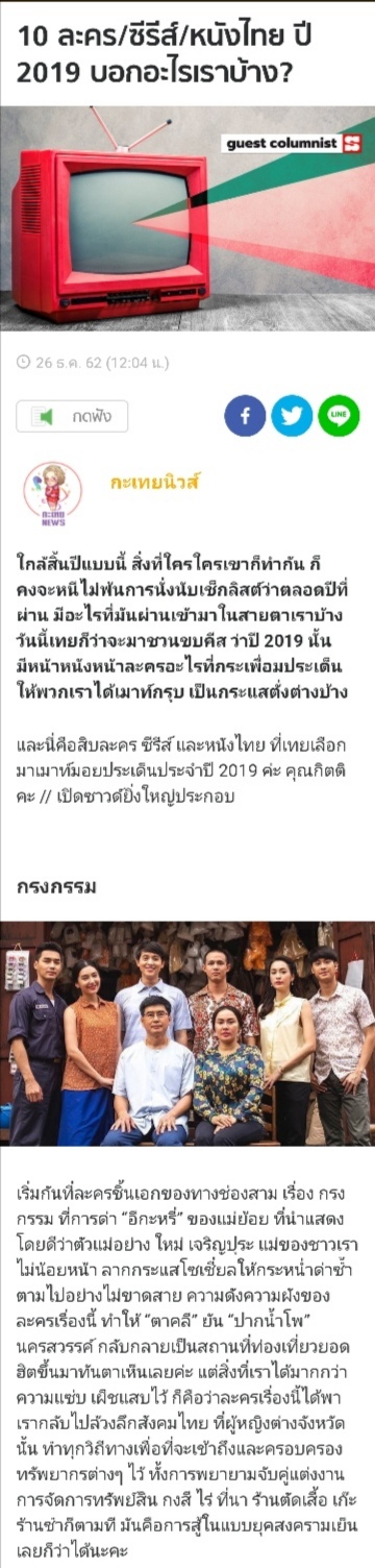 10 ละคร/ซีรีส์/หนังไทย ปี 2019 บอกอะไรเราบ้าง?