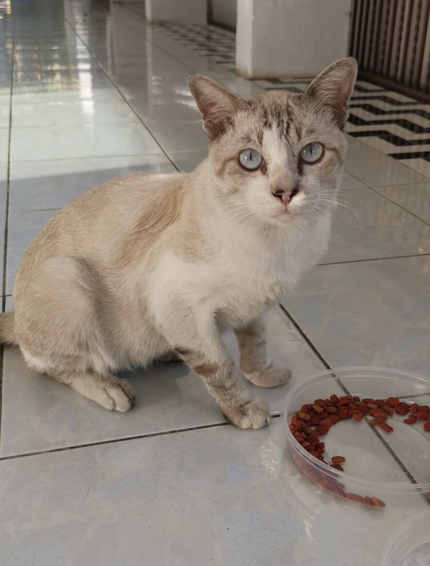 เมื่อต้นเดือนมันหลงมาที่บ้านค่ะ ก็ให้ข้าวให้น้ำมันไป กลางวันนอนบ้าน กลางคืนออกไปแรดไหนไม่รู้ เช้ามาก็มากินอาหารที่วางไว้