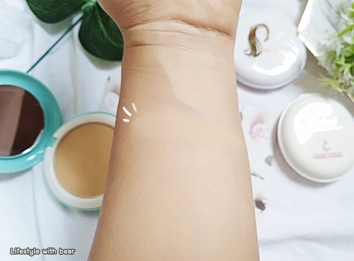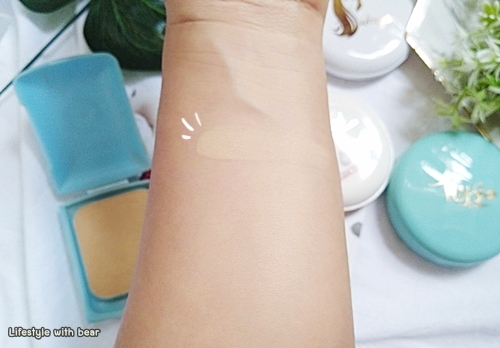 เราใช้เป็น เบอร์ C21สีพอดีกับผิวมากเว่อร์ ทาแล้วแบบว่ากลมกลืนเลยล่ะ เนื้อแป้งเค้าปิดดีแต่ว่าบางเบา แบบว่าไม่ต้องลงรองพื้นก็สามารถทาเดี่ยวๆ ได้เลย แล้วเราชอบที่เค้าไม่ดรอประหว่างวันด้วยนะ แถมเวลาที่เหงื่อออก หรือผิวเริ่มมันแล้วหน้าจะยิ่งผ่องเข้าไปอีก ดีงามตรงนี้แหละ เลิฟสุดอันนี้