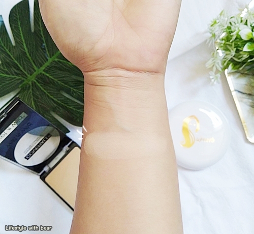เราใช้เป็น เบอร์ C2 สีในภาพดูพอดีกับผิวนะ แต่จริงๆ มันจะมีความเข้มไปนิด ระหว่างวันแอบดรอปหน่อยก็เลยจะดูไม่ค่อยผ่อง ถ้าจะให้ดีเอาเบอร์ขาวกว่านี้หน่อยเราว่าสวยเลย เนื้อแป้งละเอียดดีติดทนนะ