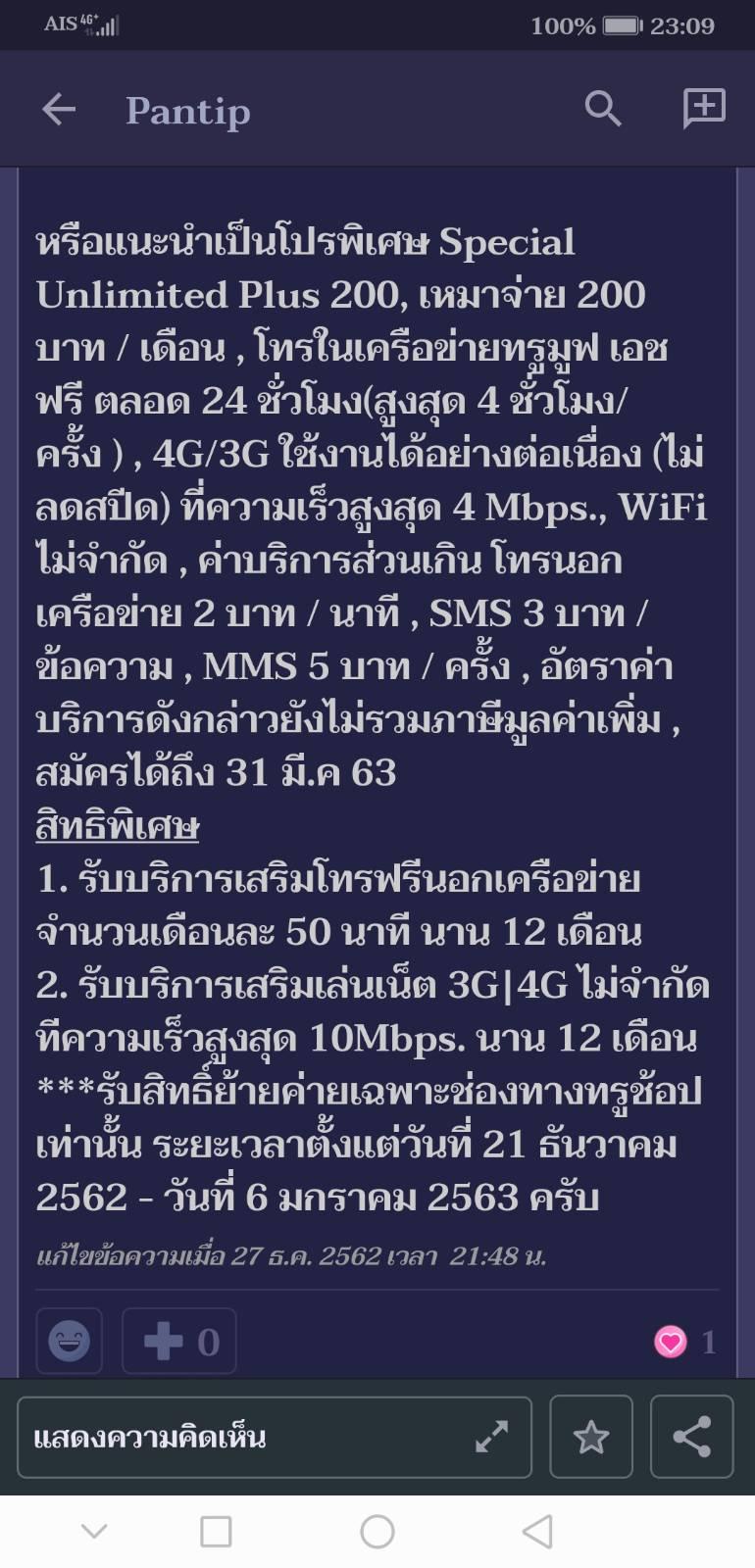 โปร เหมา เหมา 200 บาท เน็ตไม่จำกัดความเร็ว 15mbps ของ AIS กดอะไร