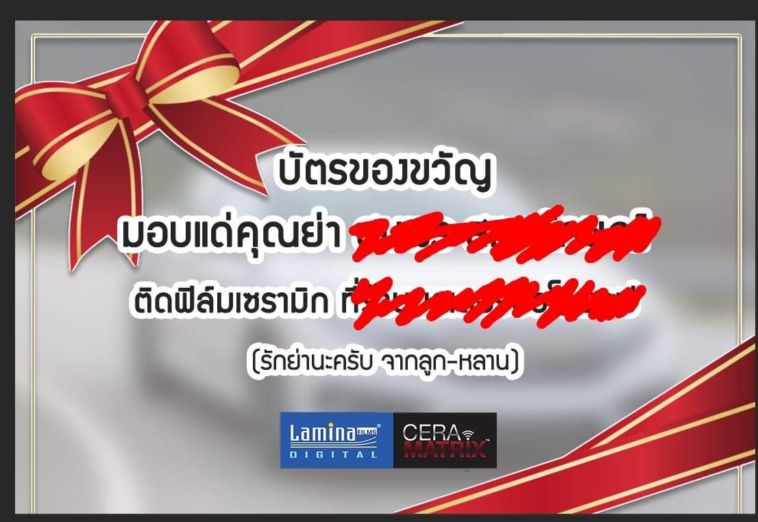 ในเมื่อ ให้หลานไปคุยด้วยแล้วก็ยังไม่ได้ผล เรากับพี่ชาย ก็เลยตัดสินใจแกมบังคับในการลงขันกันพี่น้อง มีหลานชายเราอาสาทำบัตรของขวัญขึ้นมา (เค้าตัดต่อภาพได้) และยังช่วยลงขันให้คุณย่าด้วยอีก 1000 บาท