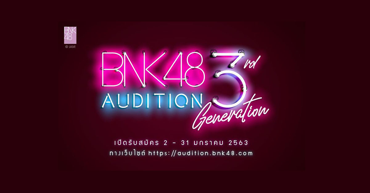 นับเป็นอีกหนึ่งข่าวใหญ่ส่งท้ายปี กับการประกาศเปิด BNK48 3rd Generation Audition ให้เด็กสาวที่มีความฝันอยากเป็น ‘ไอดอล’ เริ่มส่งใบสมัครได้ตั้งแต่วันที่ 2-31 มกราคม 2563