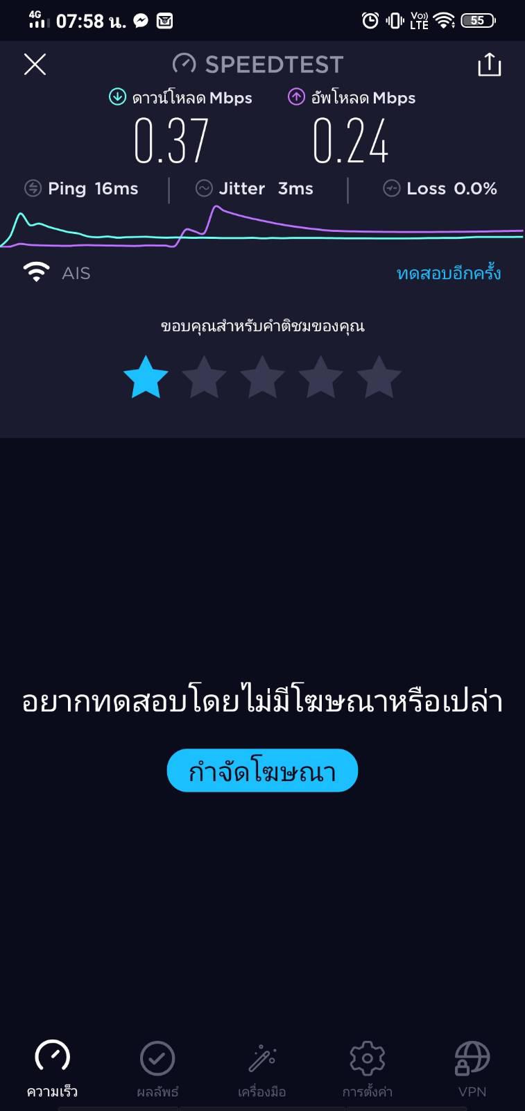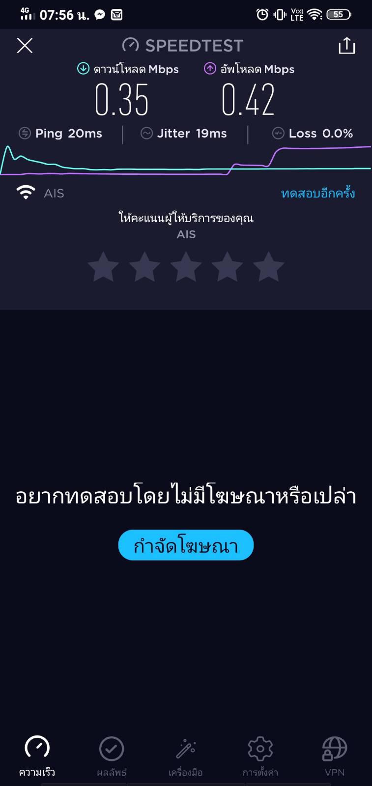 สมัครเน็ต AIS 10 mbps โปร 200 บาท แต่ได้เน็ตห่วยมาก