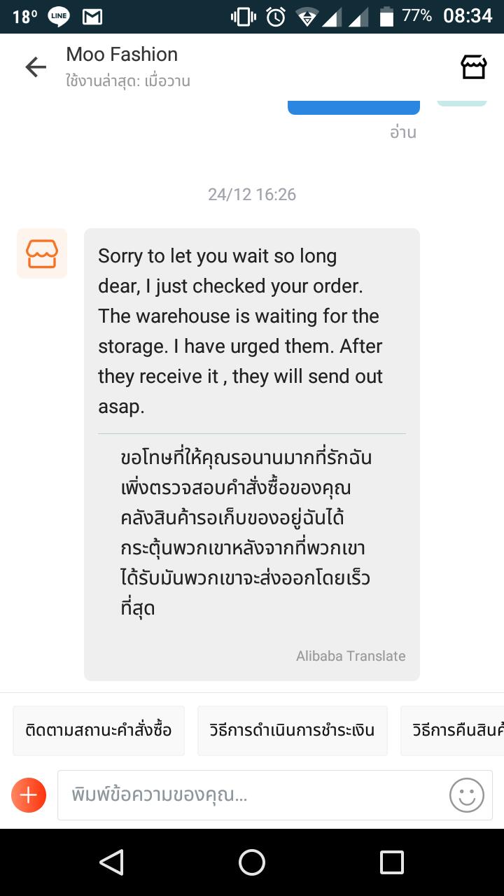 จากนั้น วันที่ 24 ลองแชททักไปทางร้านดู ได้รับคำตอบว่า
