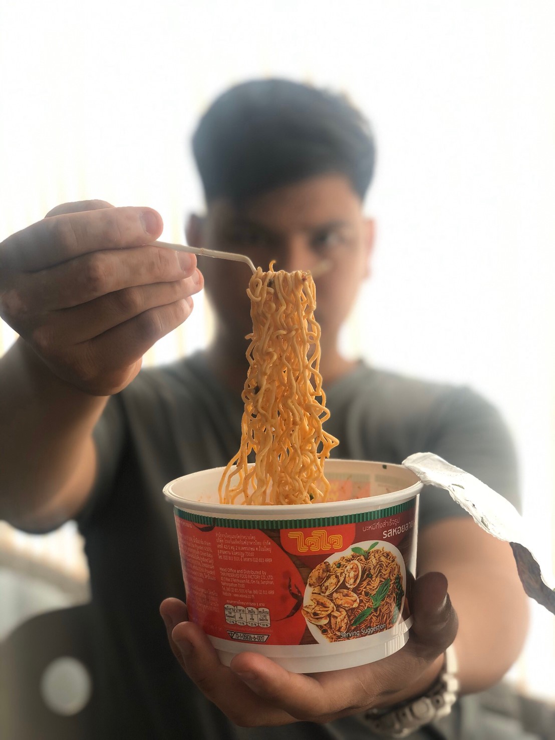 จากนั้นก็ค่อยเอาไปคลุกกับเส้นครับหน้าตามันก็จะประมาณนี้เลย หรือใครสะดวกซื้อแบบซองเอามาผัดในกะทะก็ได้ไม่ว่ากัน