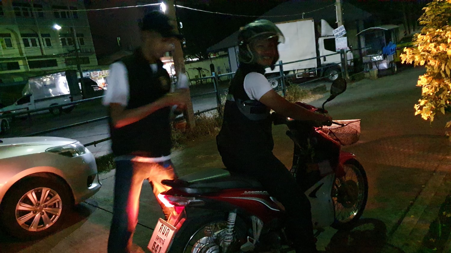 พอเอารถจอดเข้าบ้านเสร็จ กำลังจะถือขนมไปแสดงความขอบคุณ ตำรวจทั้งสองท่านก็ขับรถออกไปก่อน