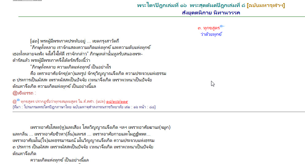 ความเกิดแห่งกองทุกข์เป็นอย่างไร และความดับแห่งกองทุกข์เป็นอย่างไร อ่านทุกขสูตร ในพระไตรฯเล่มที่ ๑๖