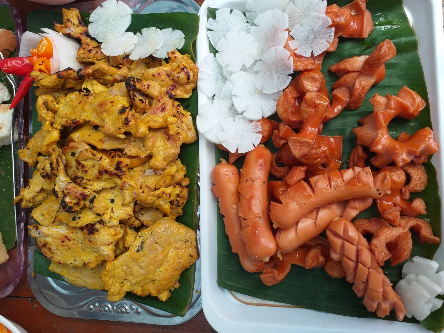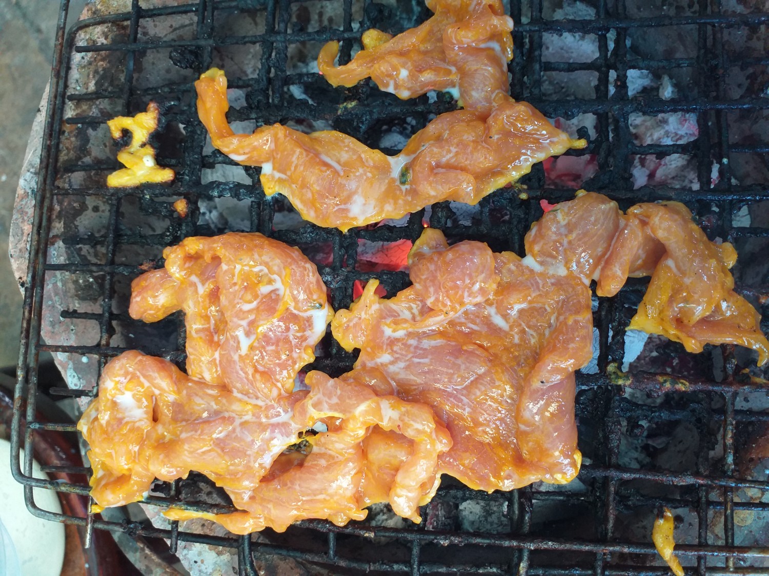 หมูแดดเดียว เนื้อแดดเดียว แบบ ปิ้งเตาถ่าน กับ แจ่วบอง ได้ไหมครับ แจกน้ำพริกและผักฟรีทั้งคู่ - ทำไมถึงทอด : ผมไม่อยากให้เกิดควันลอยเข้าบ้านหรือร้านของคนอื่น - ทำไมน้ำพริกหนุ่ม : แจ่วบอง กินได้เฉพาะบุค