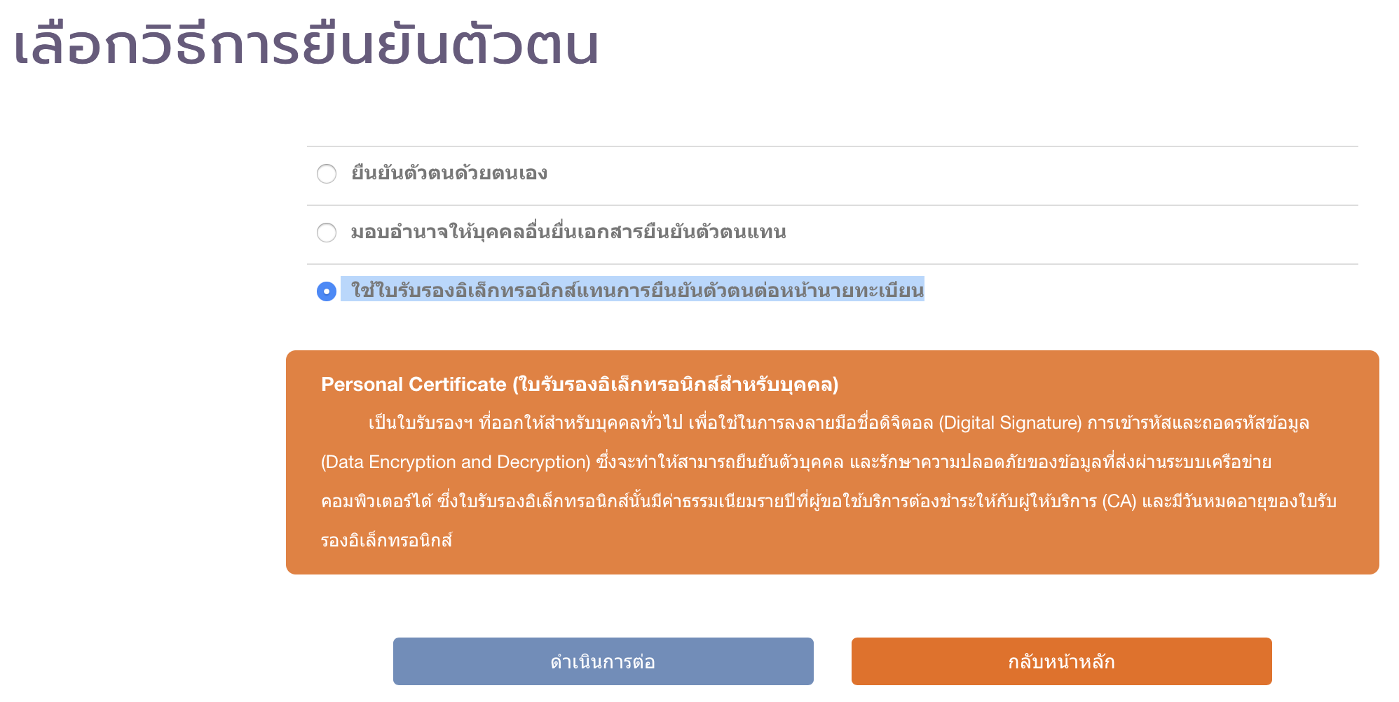ถ้าใช้ใบรับรองอิเล็กทรอนิกส์ จะได้ไม่ต้องเดินทางไปยืนยันตัวตนต่อหน้านายทะเบียน
