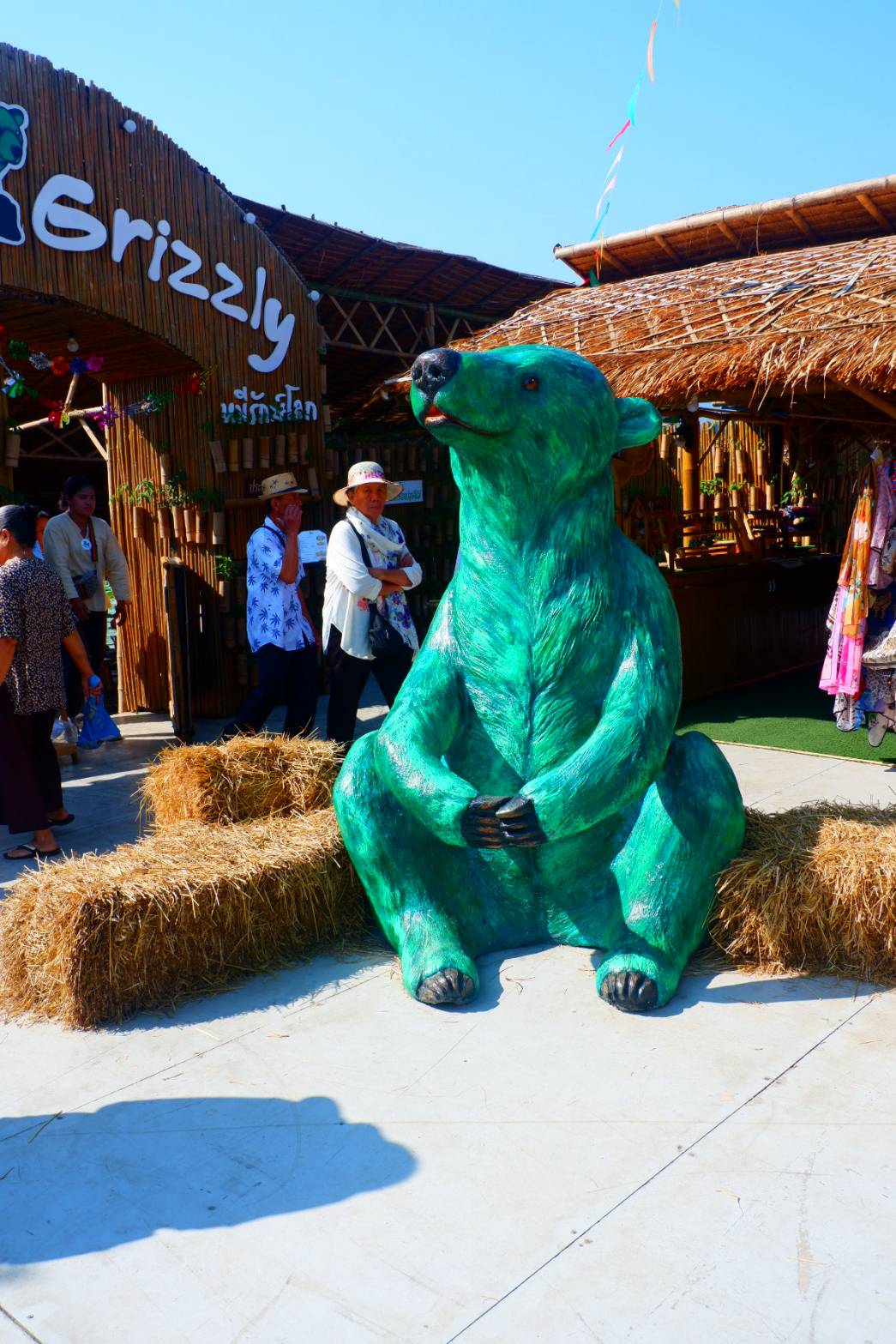 จะมีทุ่งบัวใหญ่ๆ 555+ เห็นสวยดีเลยแวะถ่ายรูป ด้านในมีตลาดเดินด้วย ชื่อตลาดหมีเขียว อารมณ์เหมือนเดินตลาดน้ำสี่ภาค แต่ไม่ใหญ่ขนาดนั้นนะคะ ^^ ด้านหน้ามีรูปจระเข้ให้ร่วมกันถ่ายรูปด้วย