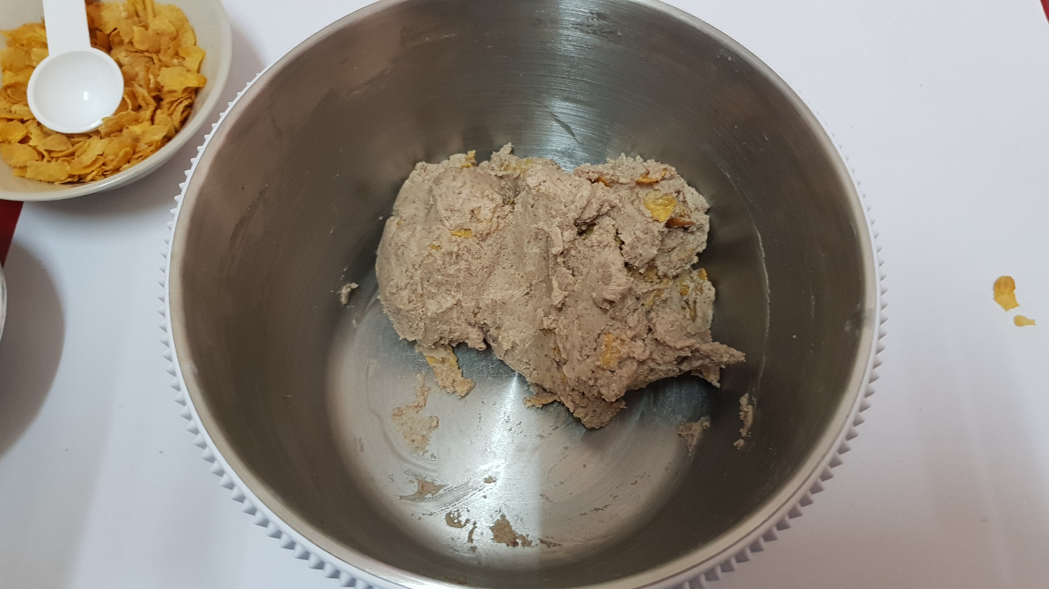 6. ใส่คอนเฟล็ก ตามลงไป และ คนให้เข้ากัน