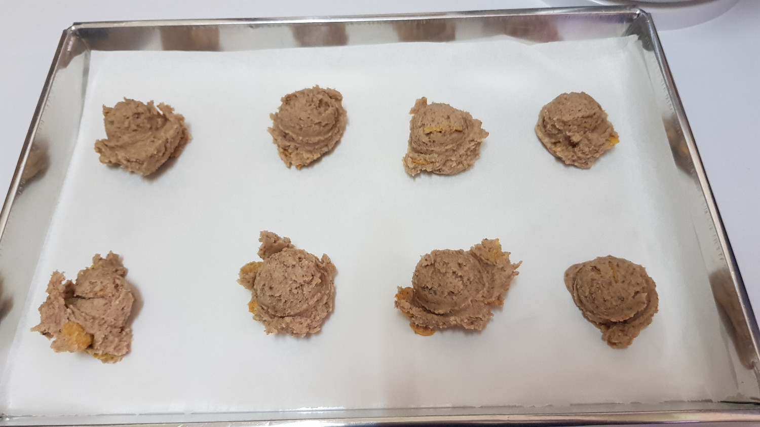 7. ตักแป้งคุกกี้ มาเรียงบนถาดอบให้ห่างกัน 2 ซม.