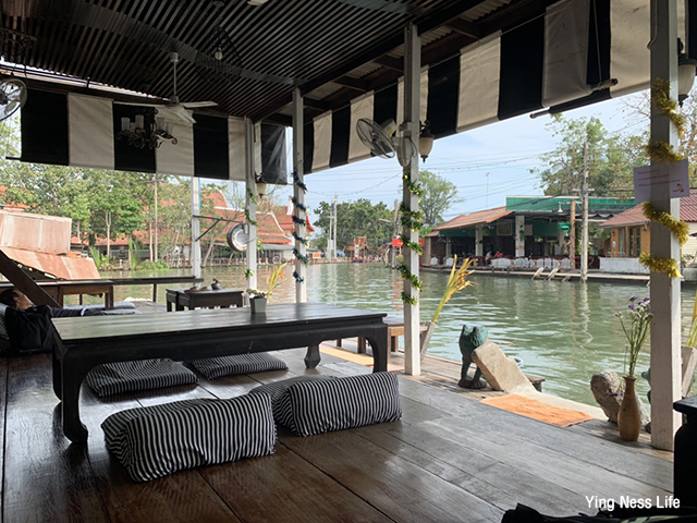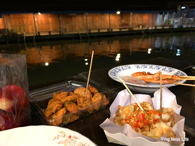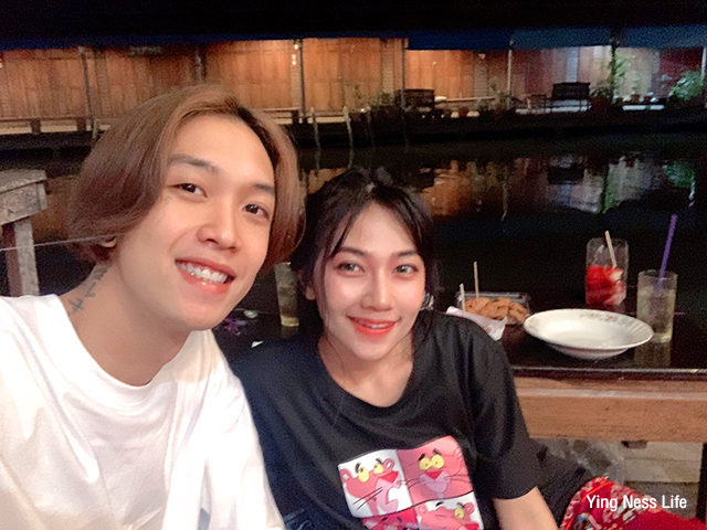 หลังจากเดินจนทั่วแล้วเราก็แวะที่ร้านนึงในตลาดเป็นร้านอาหาร ร้านนี้เค้ากำหนดให้สั่ง 2 อย่างขึ้นไป วิวดีมากเรานั่งติดริมแม่น้ำเป็นโตะญี่ปุ่นแบบนั่งกับพื้น ราคาอาจจะแรงหน่อยอย่างว่าเพราะมันเป็นสถานที่ท่องเที่ยวด้วย แต่อาหารได้ปริมาณเยอะ และอร่อยมากๆถูกปากเราทั้งคู่เลยทำให้เราไม่ค่อยเสียดายค่าอาหารเท่าไหร่ค่ะ^^ เรา 2 คนเป็นคนตัวเล็ก กินแทบไม่หมดตอนกลางคืนร้านนี้จะมีดนตรีสดด้วย น่าไปนั่งมากแต่เราตั้งใจจะนั่งชิลที่เฉลียงบ้านพักมากกว่า อีกอย่างประหยัดงบด้วย 555