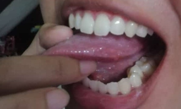 รู้สึกเจ็บ ๆ ตรงใต้ลิ้นมาสองวันแล้วค่ะ ตรงที่มันเป็นติ่งย้อย ๆ ไม่แน่ใจว่าเรียกว่าอะไร พอลองส่องกระจกดูแล้วเป็นแบบนี้ มันเหมือนกำลังจะหลุดออกจากกันเลยค่ะ พอลองแตะ ๆ ดูแล้วเจ็บมาก มันคืออะไรคะหรือมันจะ