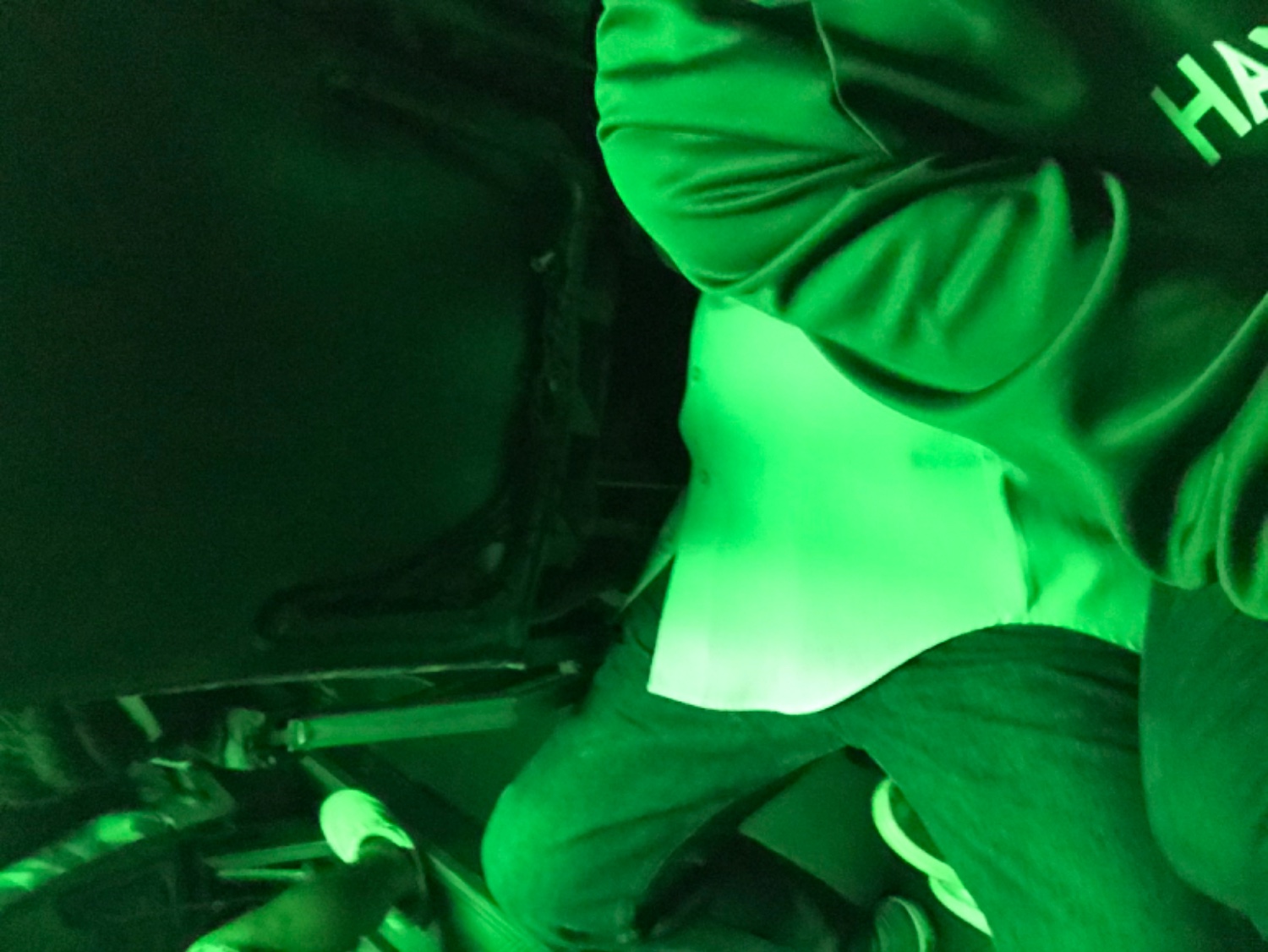 ผมก็มาขึ้นคันใหม่ ปรากฏว่าเต็มทุกเบาะ ผมก็เดินมาท้ายรถทัวร์ มันจะมี 4 เบาะที่นั่งที่หายไปเป็นพื้นที่ว่าง แต่มีเจ้าถิ่นนอนที่พื้นอยู่แล้ว
