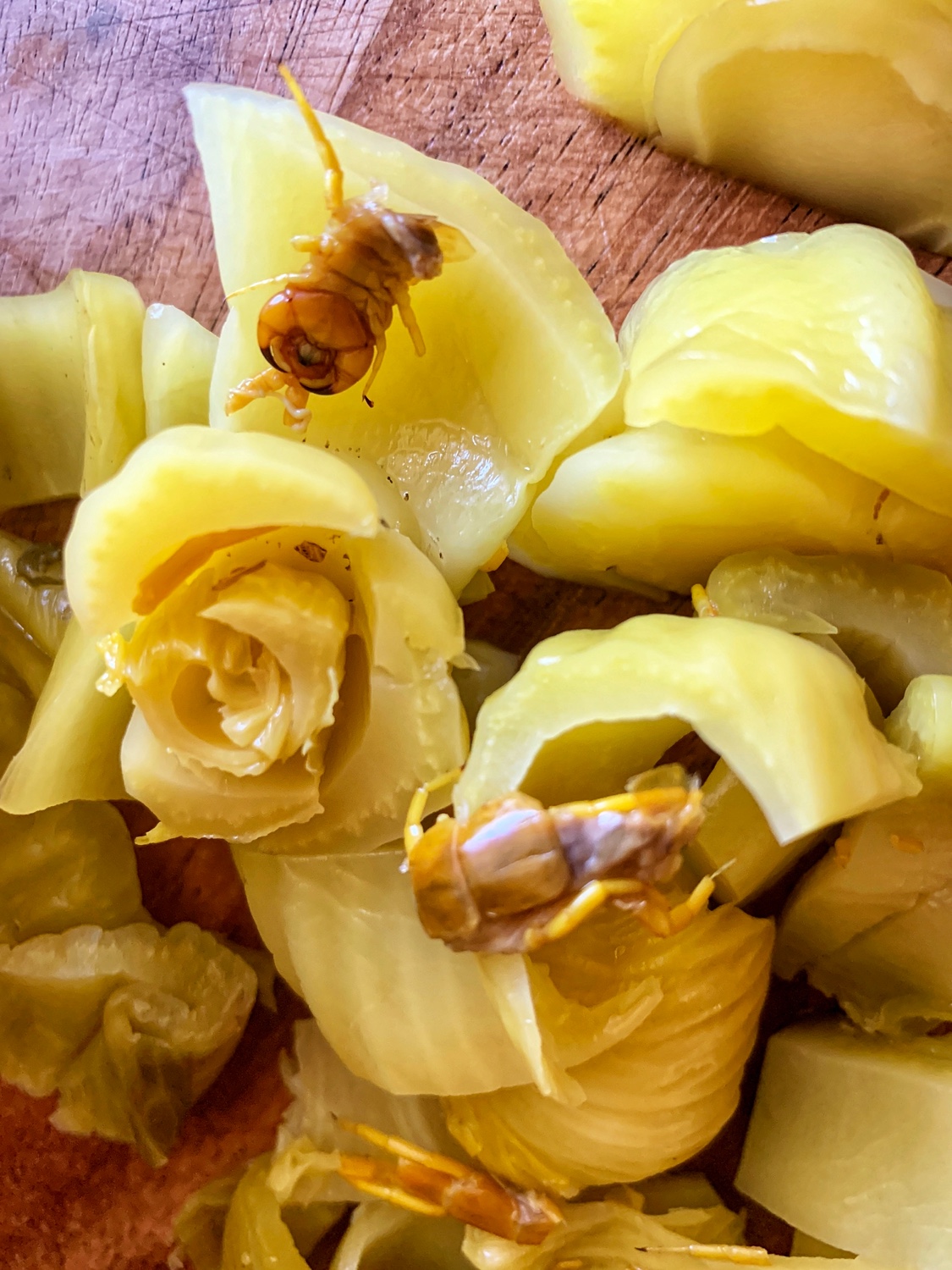 เดาว่านี่คือลูกๆ ซึ่งยังมีสมาชิกครอบครัวตัวอื่นๆแฝงอยู่ในผักกาดดองกออื่นๆที่อาจอยู่ในถุงอื่นๆ