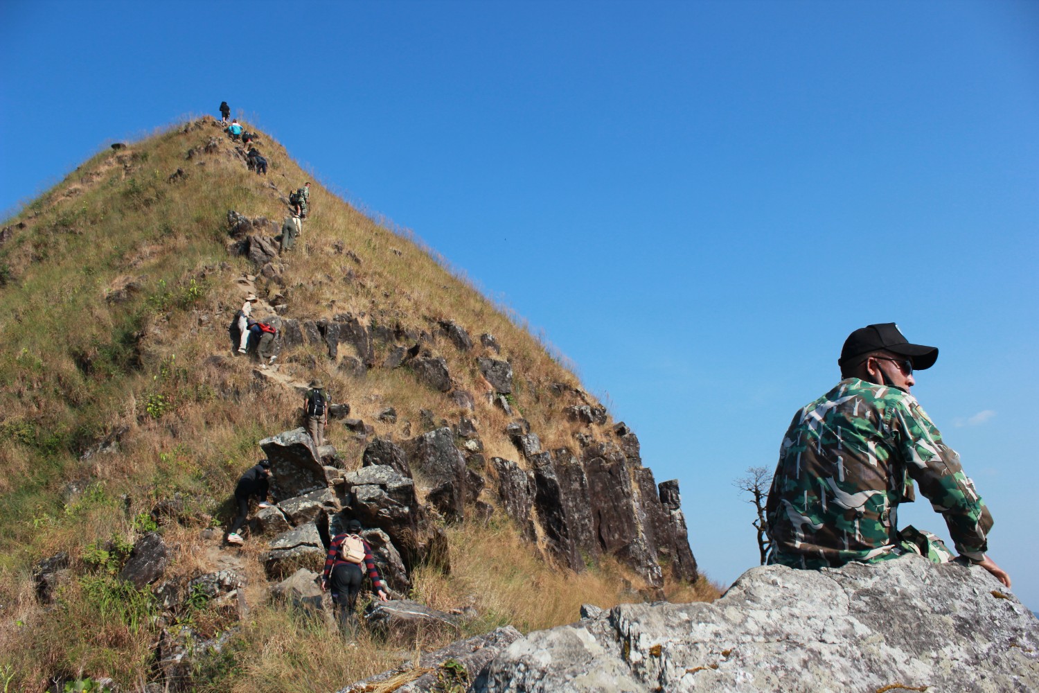 ตอนเช้าลูกหาบแนะนำมาว่าปีนขึ้นไปถ่ายรูปบนยอดลูกช้าง(ยอดก่อนลงมาลานกางเต็นท์)