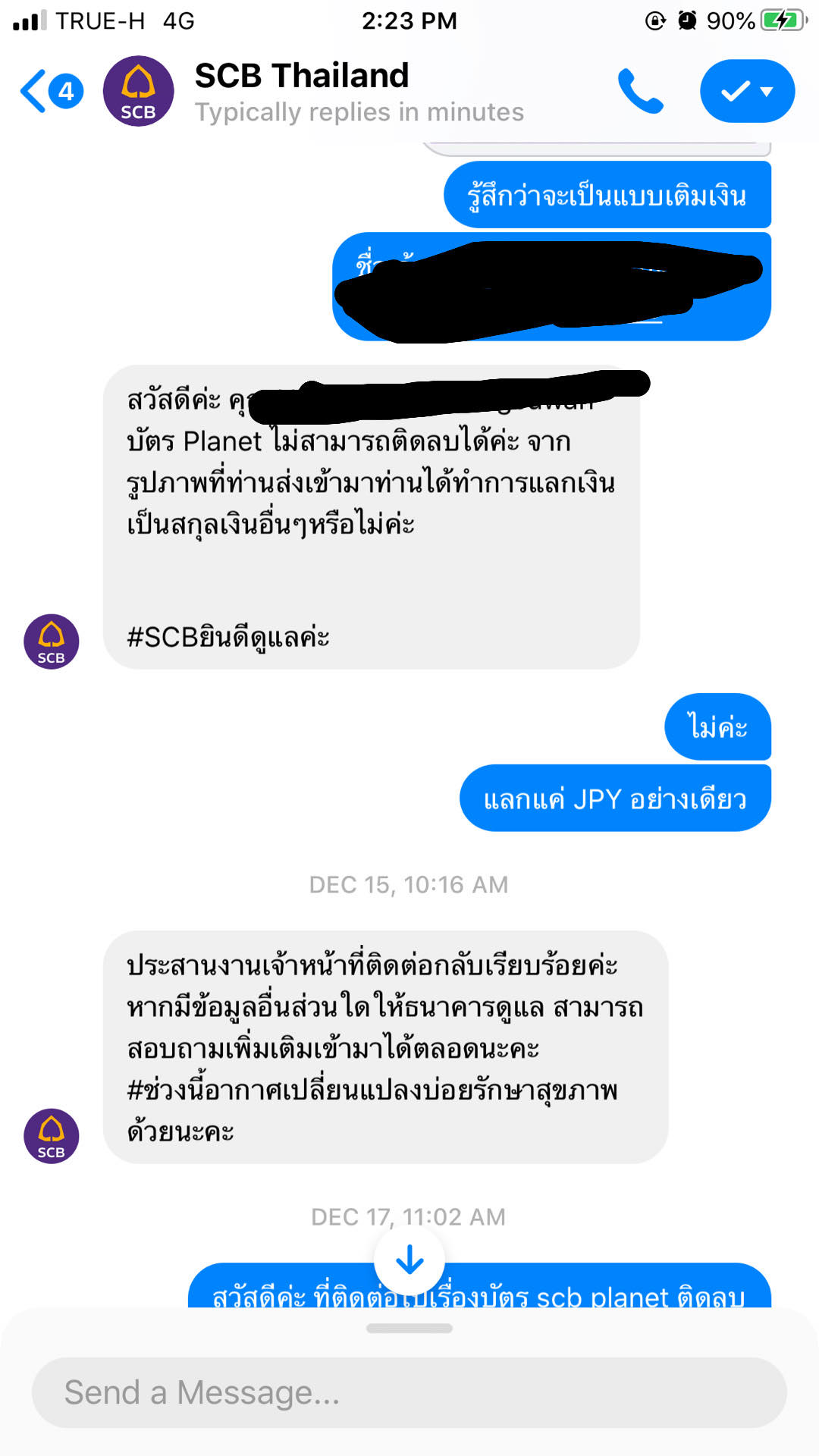 จำนวนเงินในบัตรติดลบ -14,645.23บาท จึงติดต่อประสานงานไปยัง Facebook SCB Thailand และ Call Center