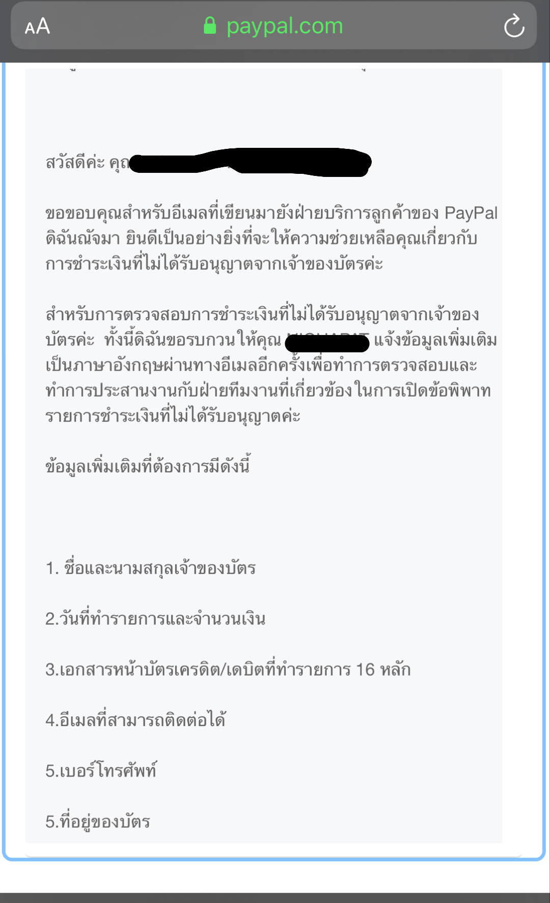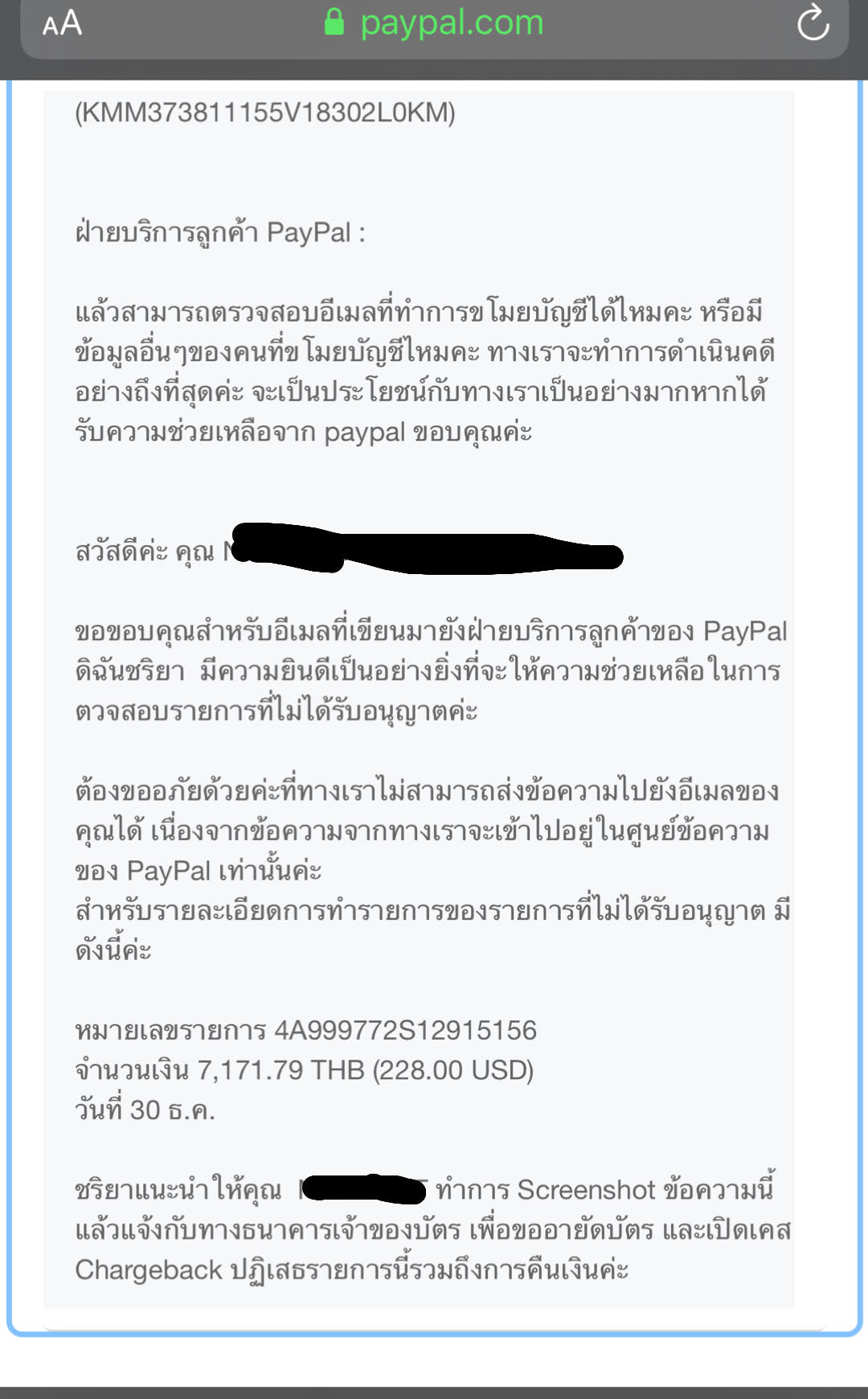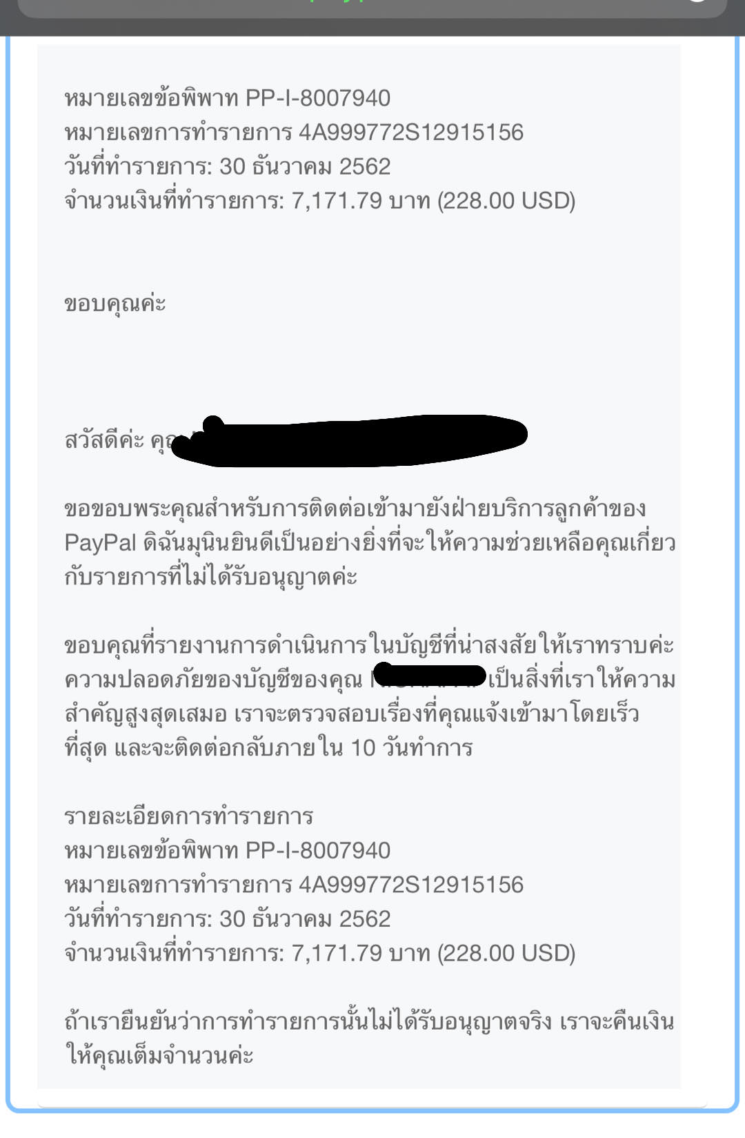 เจ้าหน้าที่จึงให้เราติดต่อกับทางบริษัท Paypal ด้วยตนเองแต่เราไม่ยินยอม