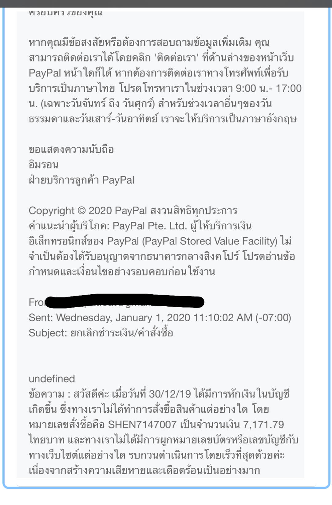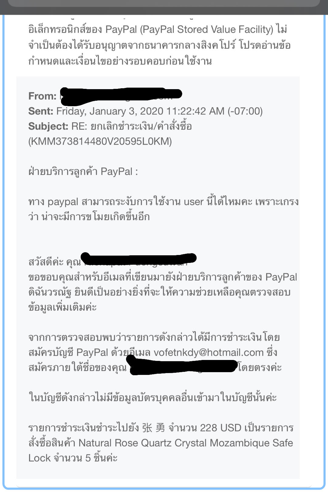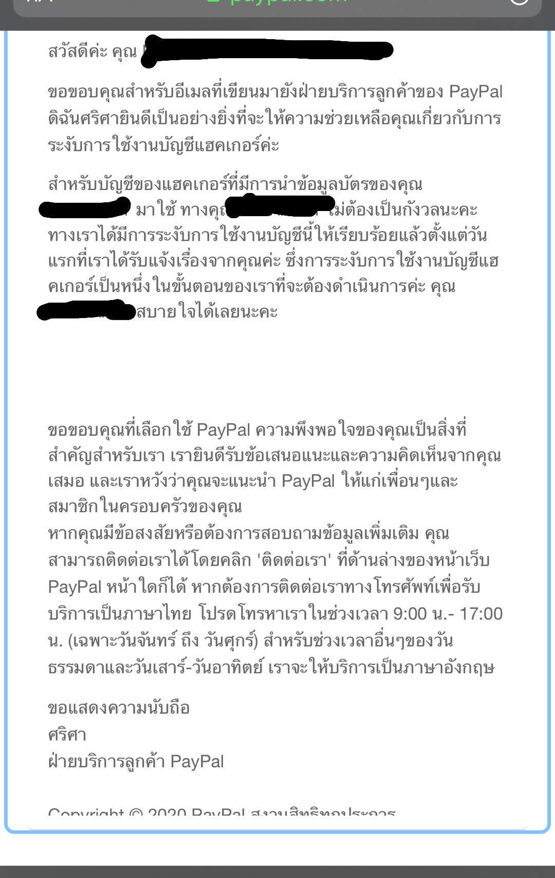 เจ้าหน้าที่จึงให้เราติดต่อกับทางบริษัท Paypal ด้วยตนเองแต่เราไม่ยินยอม