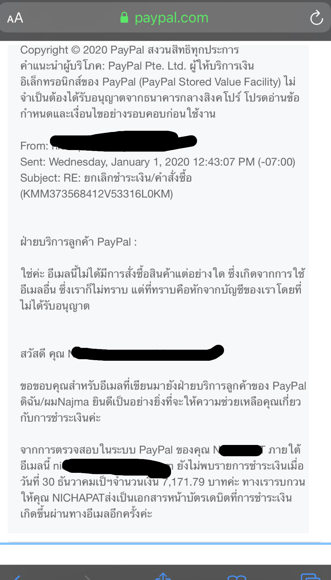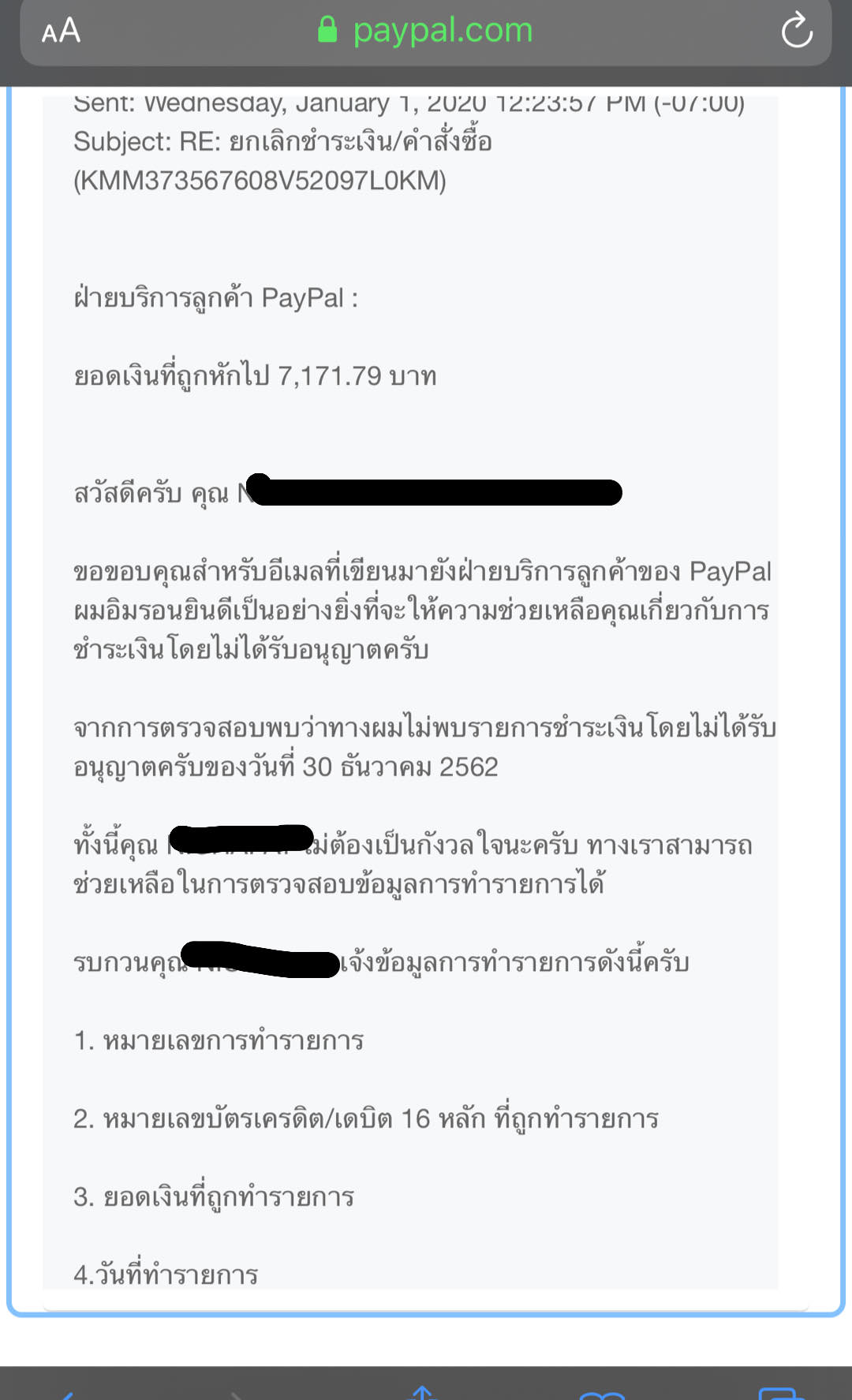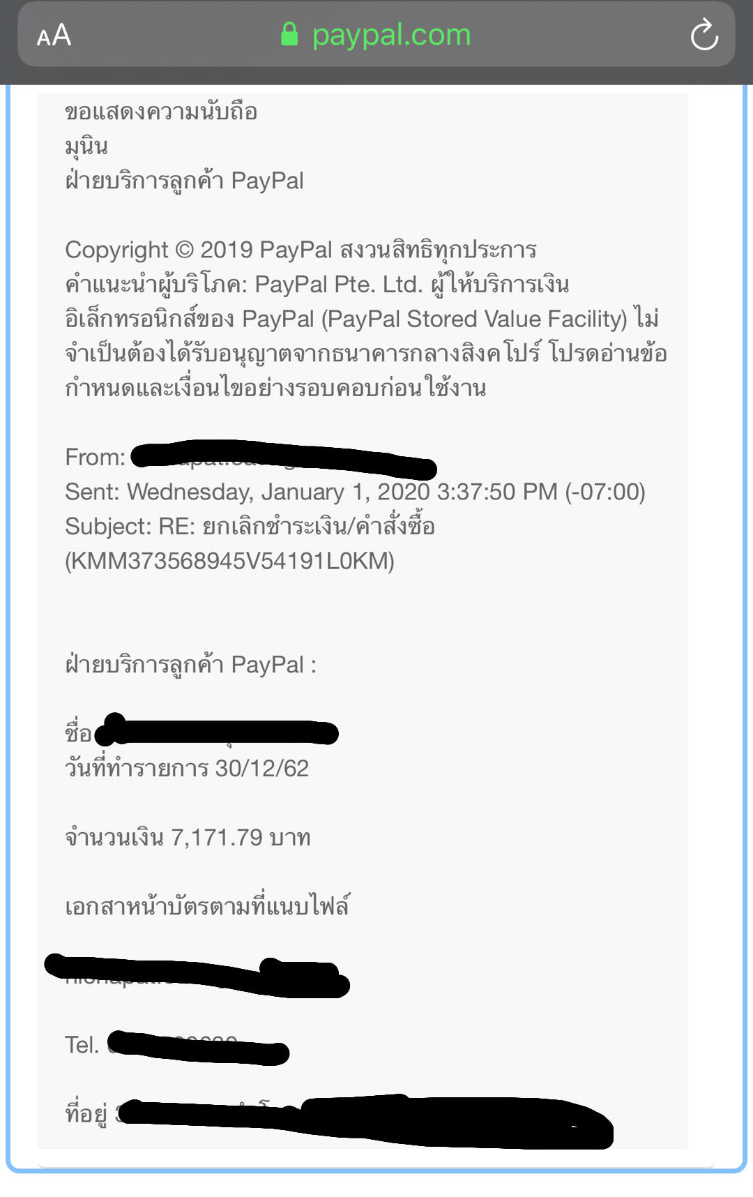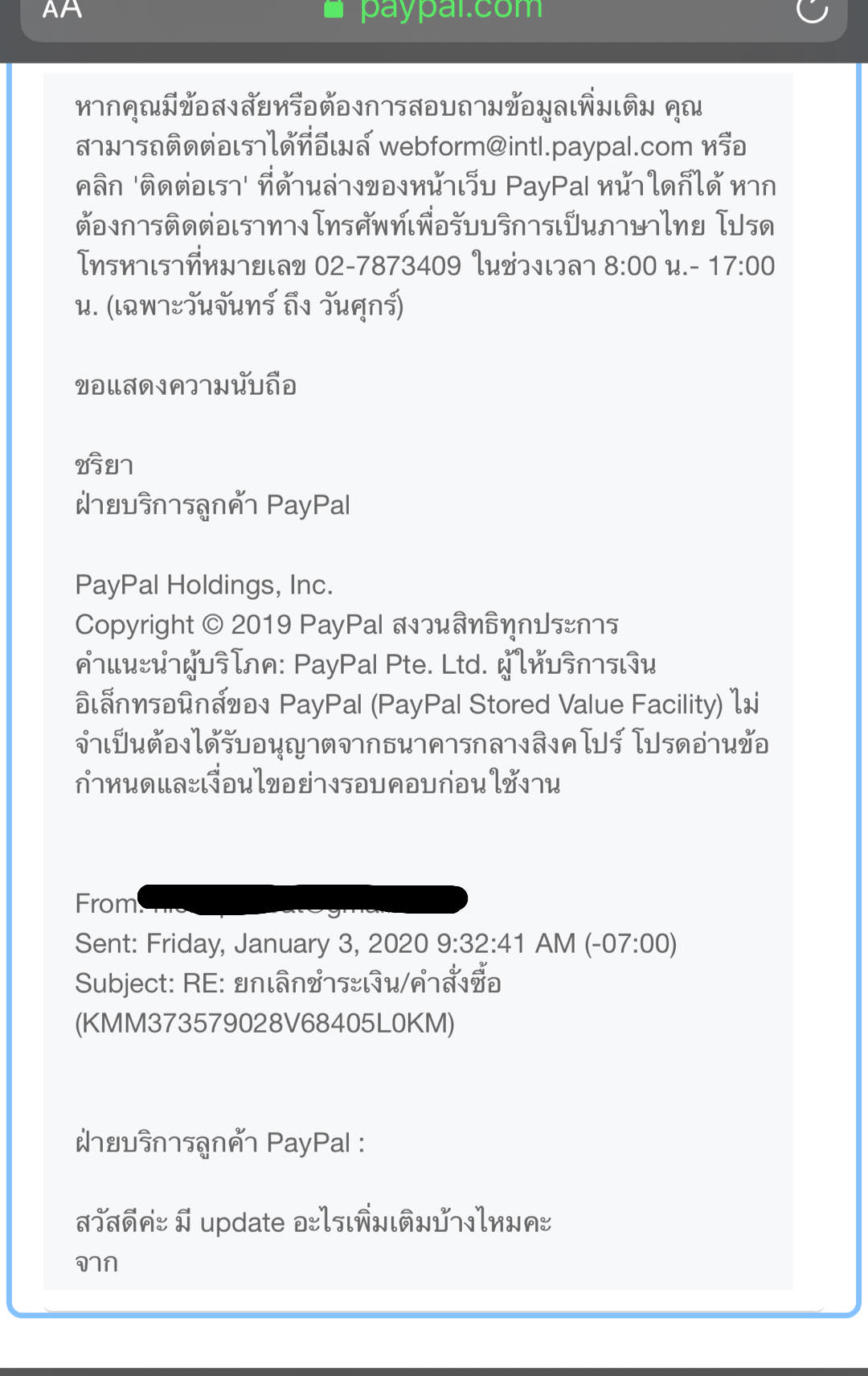 จนเมื่อวันที่ 1 ม.ค.63 เราได้ติดต่อและดำเนินเรื่องกับทาง Paypal โดยตรง