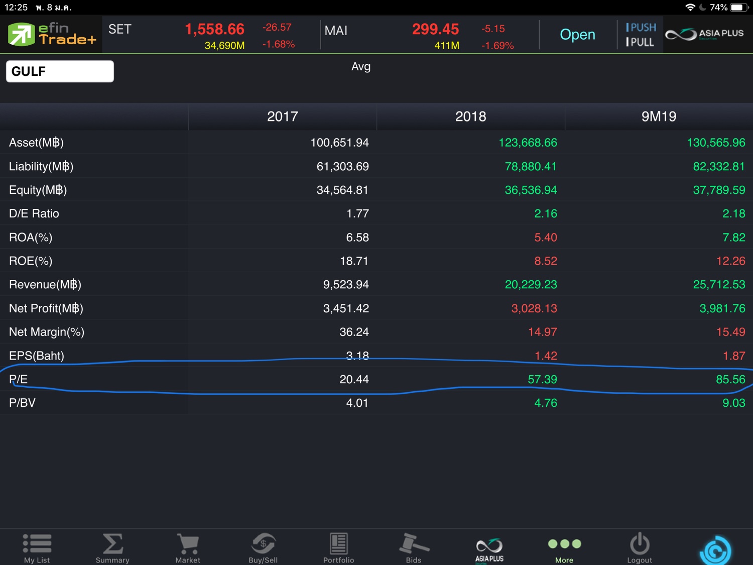 AWC PE = 200 GULF PE = 90 BAM PE = ? ราคากำไรปี 63 PE = 18