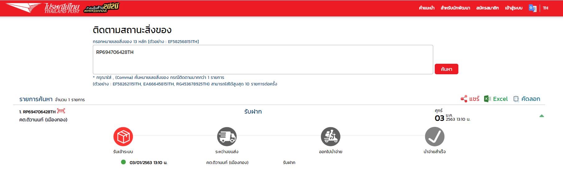 ส่งของแบบลงทะเบียนกับไปรษณีย์ตั้งแต่ 7 มกรา จนตอนนี้ยังไม่ได้รับสินค้า