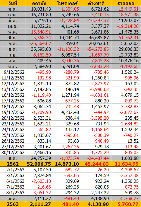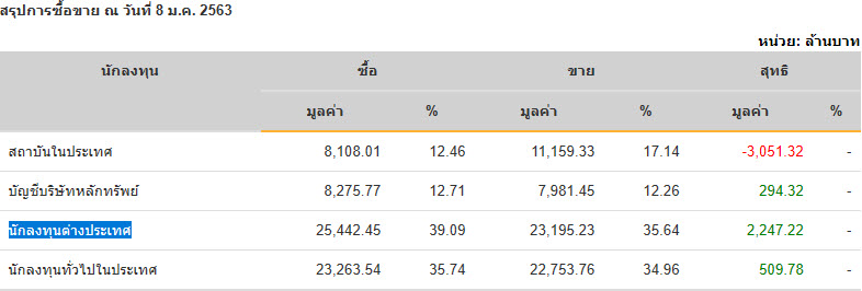 Sinthorn Summary 8/1/2563 : ต่างชาติซื้อสุทธิ 2,247.22 ลบ.