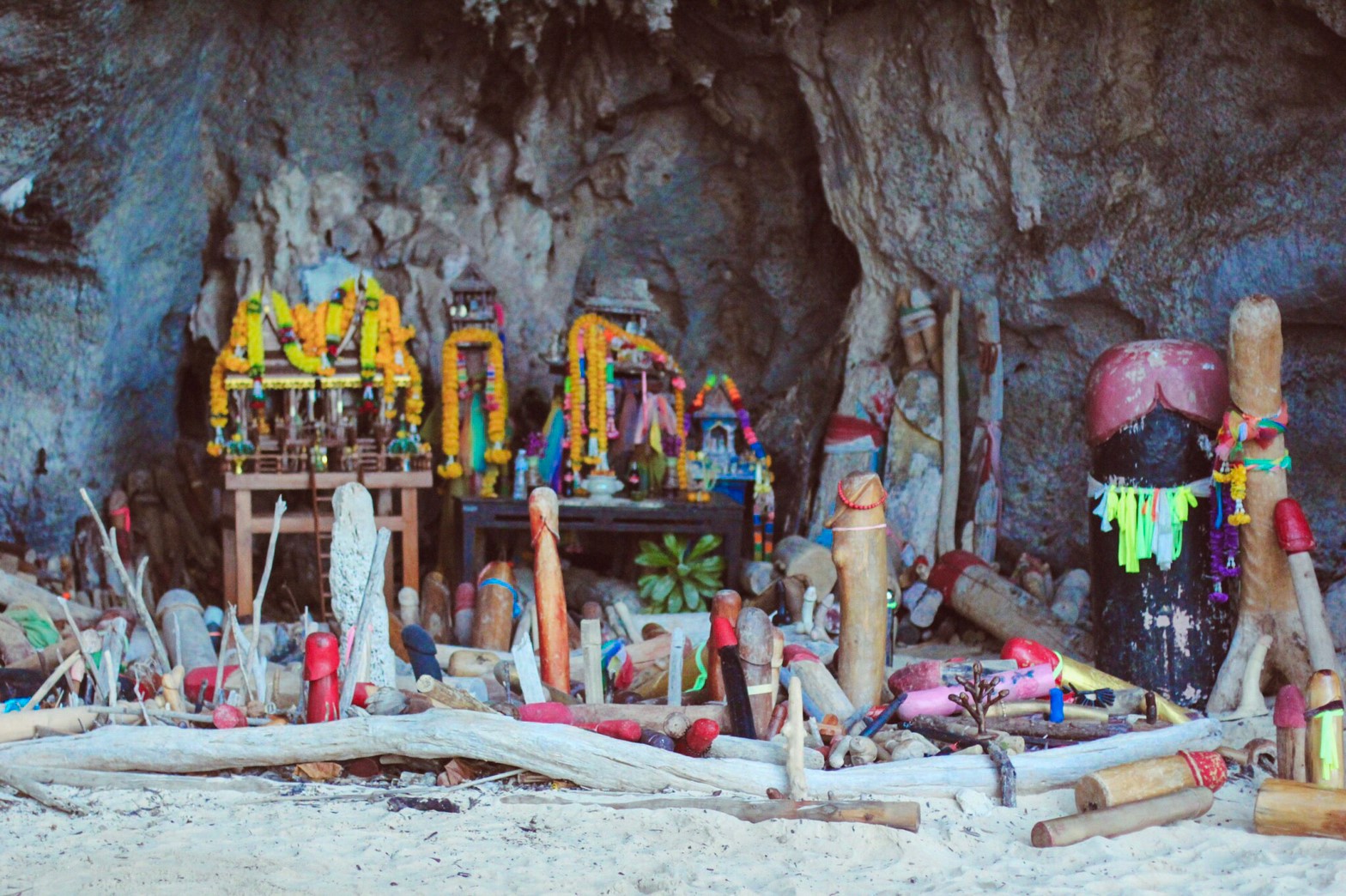ในปากถ้ำจะมีศาลของเทพธิดาผู้หญิงหรือพระนาง คนท้องถิ่น ชาวประมงและนักเดินเรือจะมีความเชื่อและศรัทธา สิ่งศักดิ์สิทธิ์ที่สถิตในถ้ำพระนางในปกปักรักษาและคุ้มครองให้ประกอบสัมมาอาชีพ และความสมหวัง และเมื่อความหวังสัมฤทธิ์ผล ชาวประมงก็จะนำสิ่งของเซ่นไหว้มาสักการะบูชาที่ศาลนี้