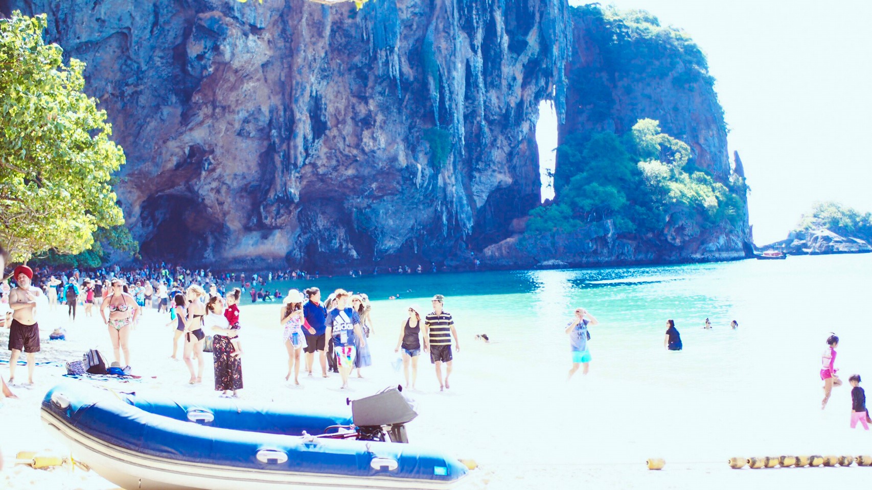 จุดหมายที่แรกก็คือ ถ้ำพระนาง แต่เรือจะแวะรับผู้โดยสารที่หาดไร่เลย์ค่ะ