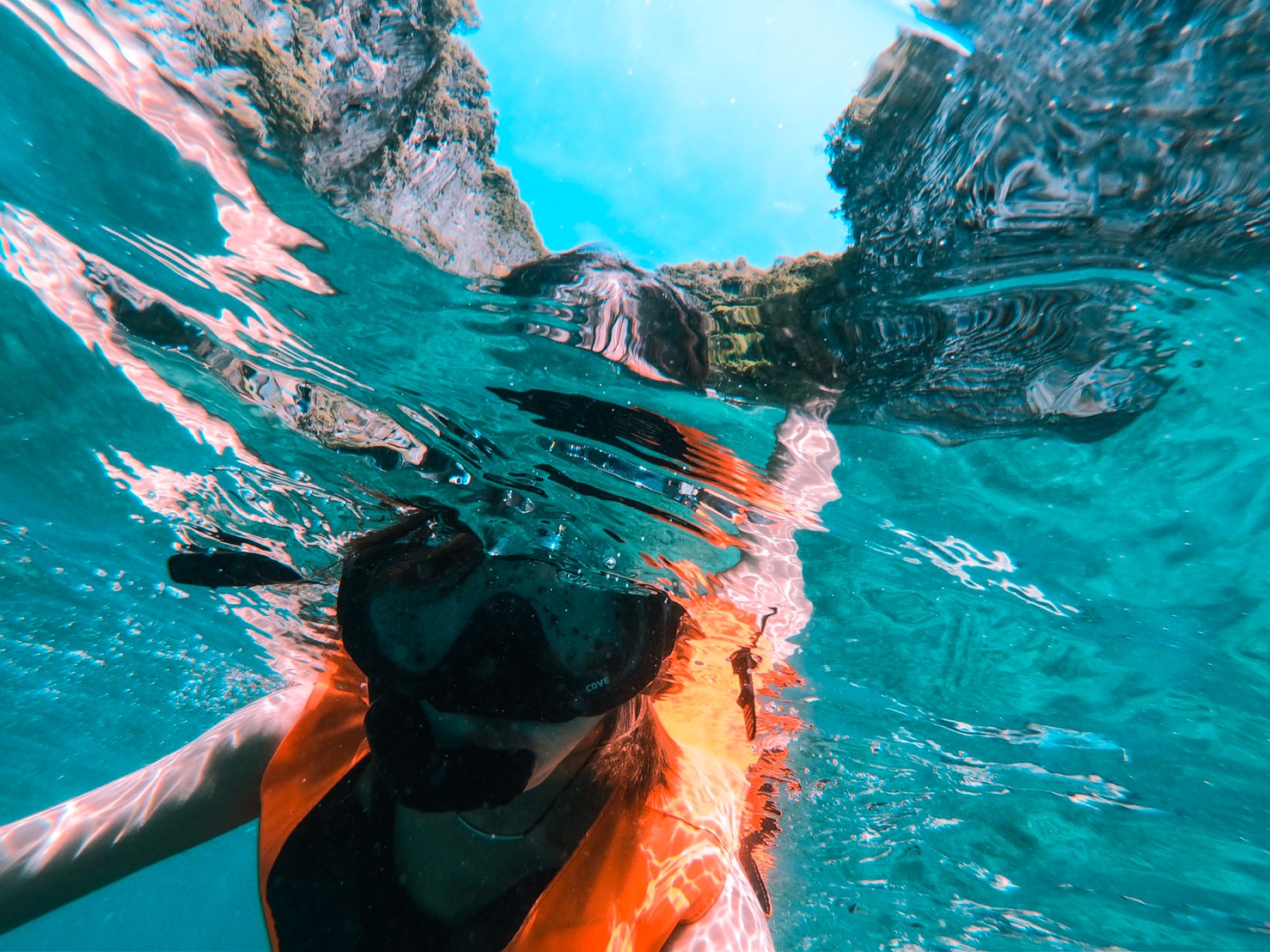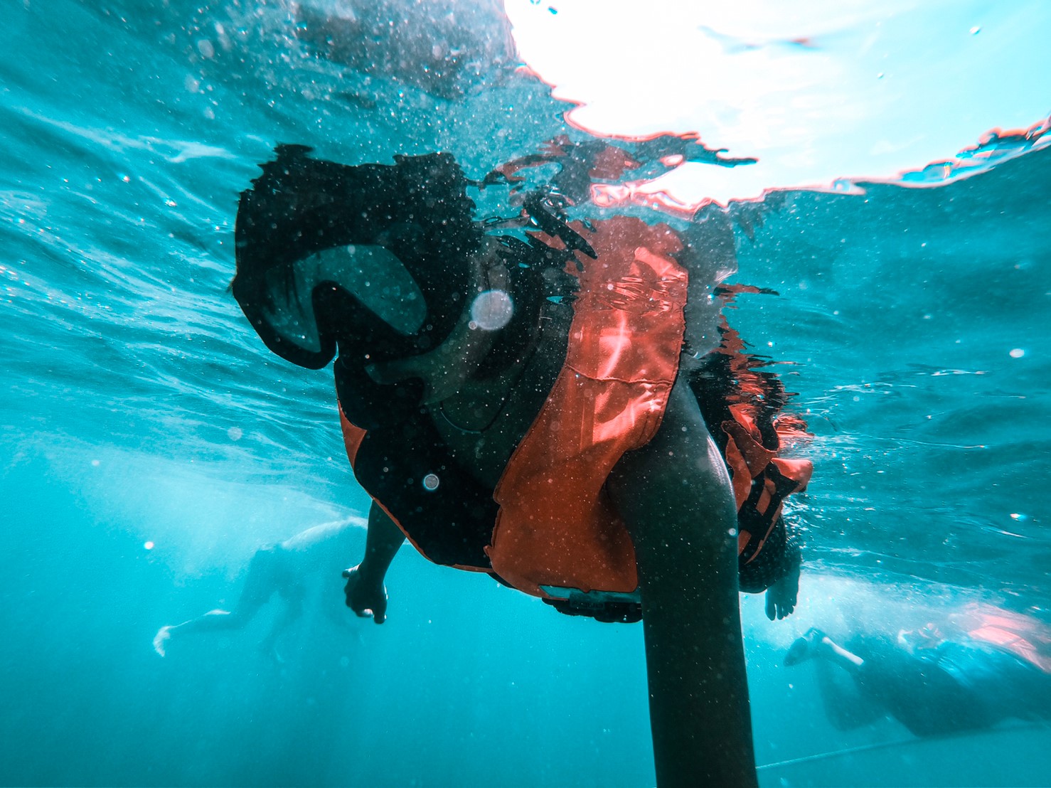 และแล้วเวลาที่เรารอคอยก็มาถึง ขาดไม่ได้เมื่อมาทะเลอันดามันแล้ว ต้องได้ดำน้ำดูประการัง ดูธรรมชาติใต้ท้องทะเล วันนี้คลื่นค่อนข้างจะแรง ก็แอบลุ้นอยู่ว่าจะหาจุดดำน้ำได้มั้ย วนเรืออยู่สักพัก พี่ๆ ไกด์ของเราก็บอกว่าได้ที่ๆ เหมาะแล้ว แต่อาจจะไม่ค่อยเห็นประการังเท่าไหร่ แต่เพื่อความปลอดภัยทุกคนก็โอเคค่ะ เราไปดำน้ำกัน