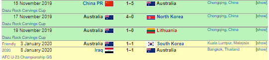 ผลงานอุ่นเครื่อง 4 เกมของออสเตรเลียก่อนเจอไทย