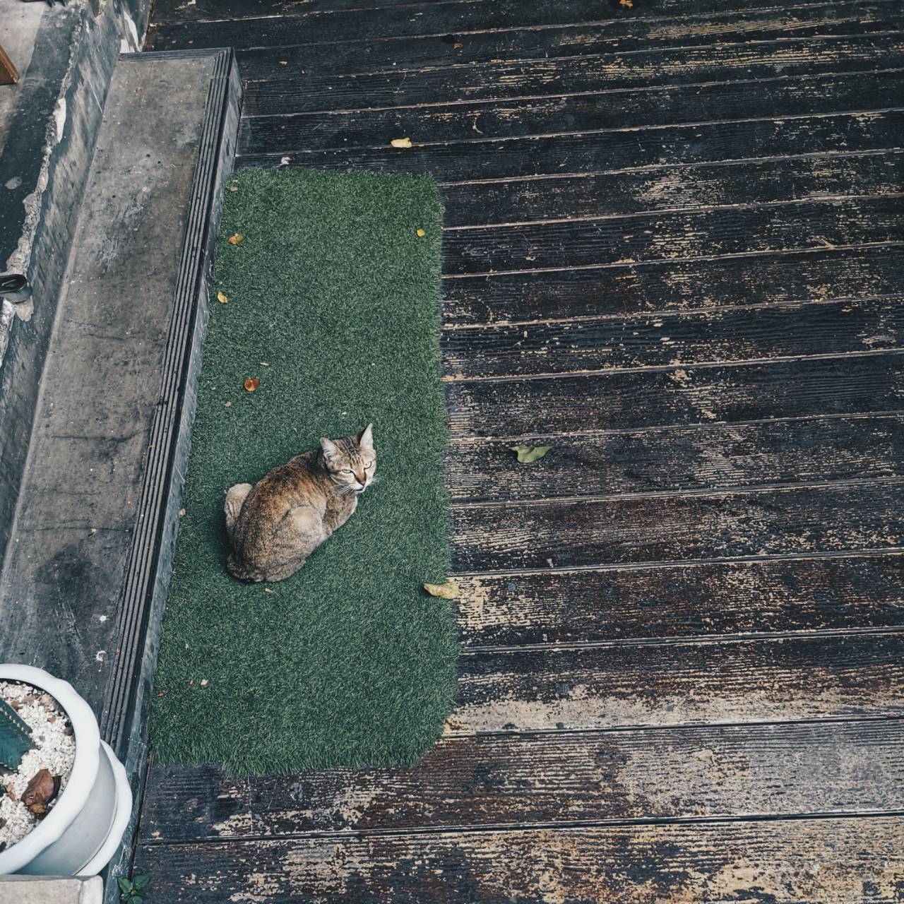 Morning Greeting กับเจ้าเหมียวเจ้าถิ่น หน้าตาดูเป็นมิตรดีจัง ส่วนเมื่อคืนนั้น เกสที่ว่าจะเข้ามาเป็นรูมเมทไม่ได้มา เราเลยนอนคนเดียว