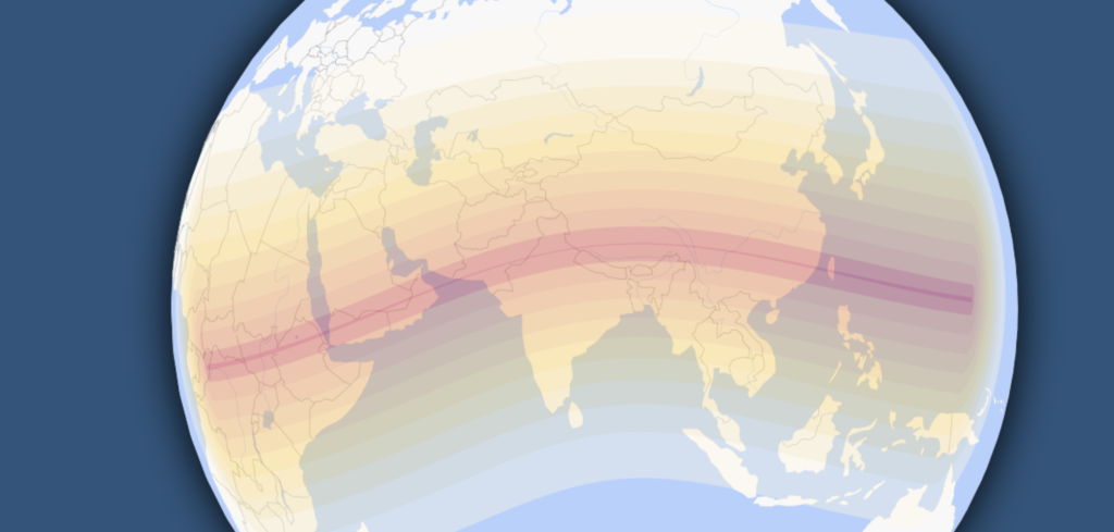 (บริเวณที่แนวเงาของสุริยุปราคาพาดผ่าน ที่มา – Date and Time)