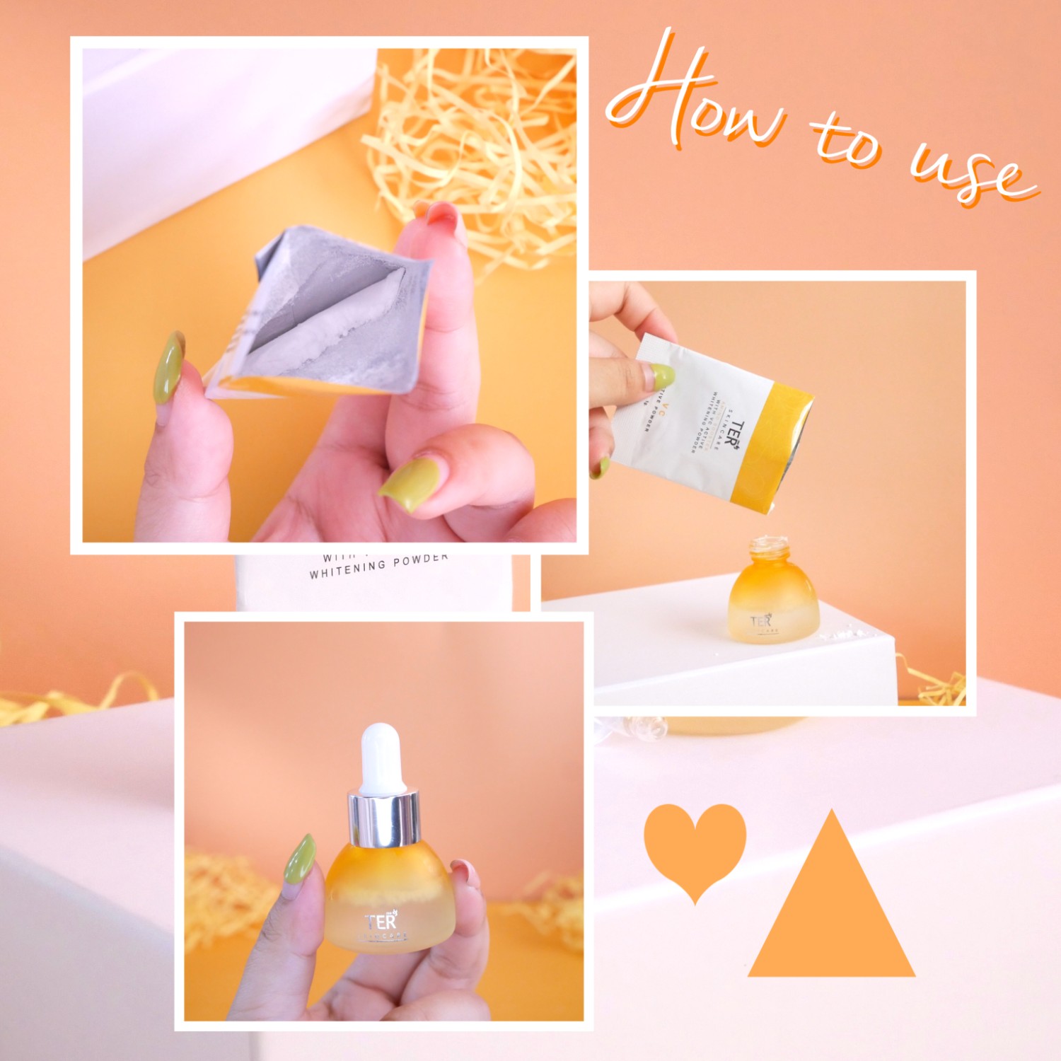 -ใส่ผงวิตามินลงในขวดเซรั่ม แล้วเชคให้เข้ากัน