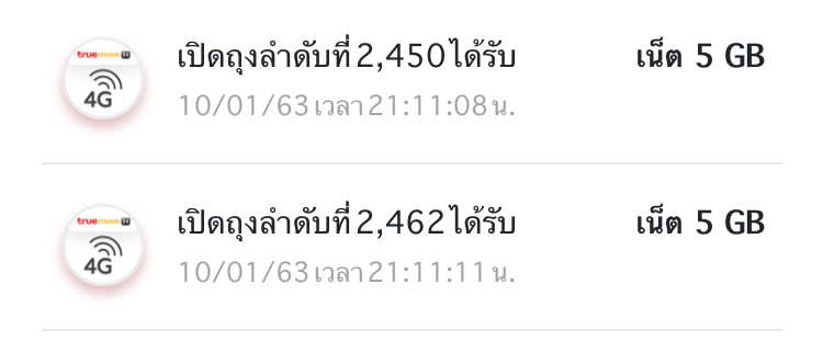 เล่น lucky bag ทรูได้เน็ต10 GB แต่ไม่มีข้อความเข้า